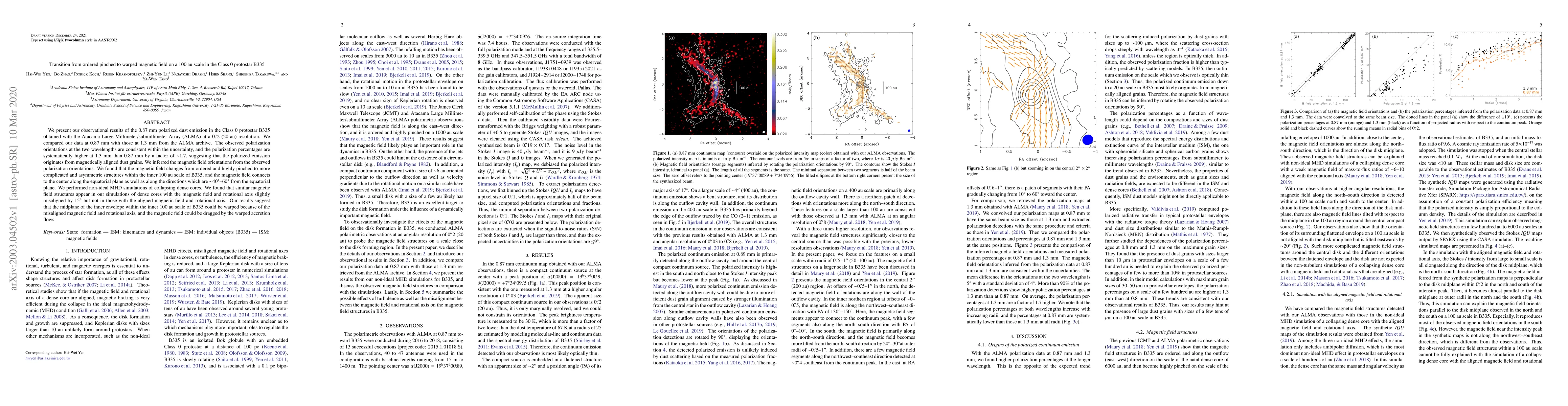 This study using ALMA observations reveals a transition from ordered to warped magnetic fields in the protostar B335 on a 100 au scale, suggesting misalignment between the magnetic field and rotational axis may cause warping of the inner envelope. Non-ideal MHD simulations support this, showing similar magnetic field structures when the magnetic field and rotational axis are misaligned.