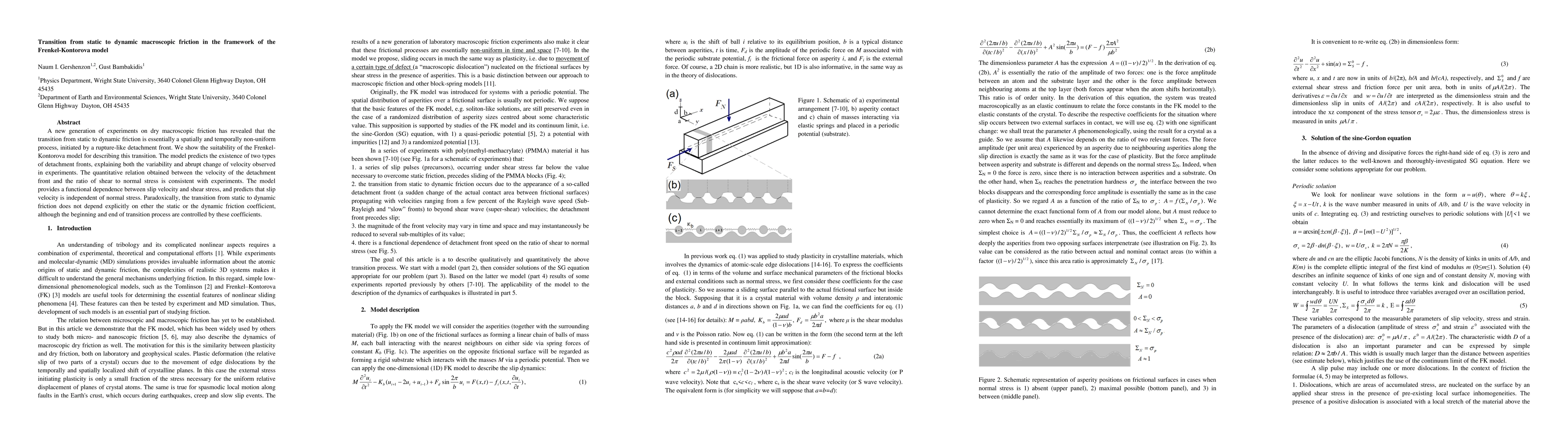 This paper uses the Frenkel-Kontorova model to describe the transition from static to dynamic macroscopic friction, revealing that this transition is a spatially and temporally non-uniform process characterized by rupture-like detachment fronts. The model predicts two types of detachment fronts, explaining observed variability and abrupt velocity changes, and aligns with experimental observations.