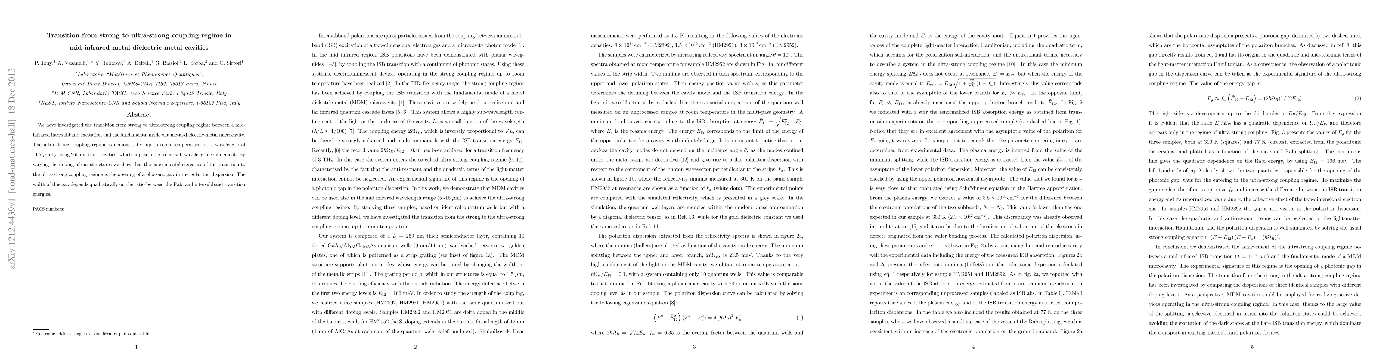 The research used a combination of theoretical modeling and experimental measurements to investigate the transition from strong to ultra-strong coupling regime in mid-infrared metal-dielectric-metal cavities.