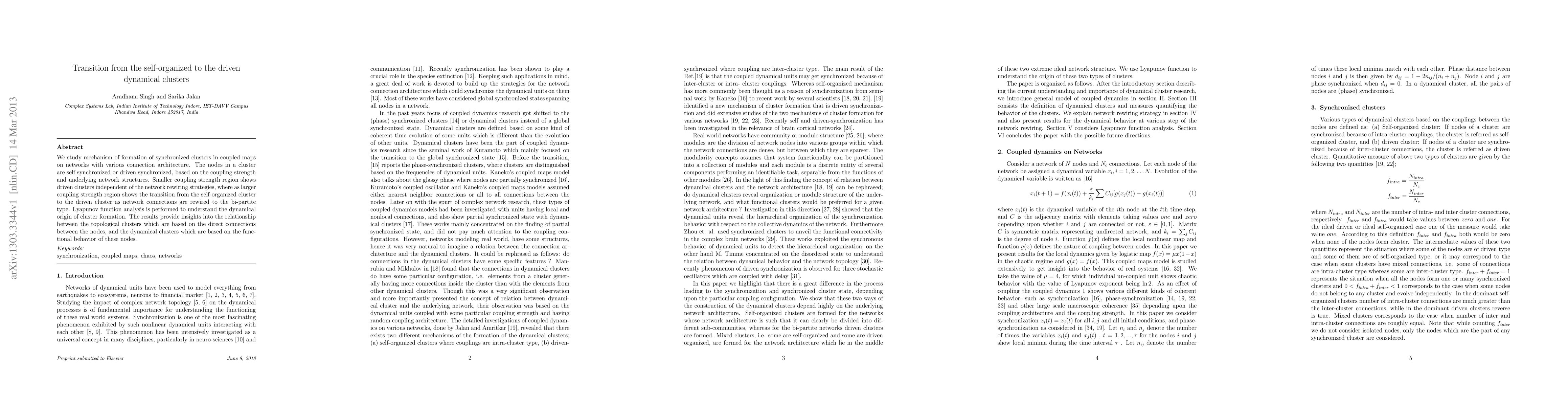 Researchers study how synchronized clusters form in coupled maps on networks with different connection architectures, finding a transition from self-organized to driven synchronization at varying coupling strengths.
