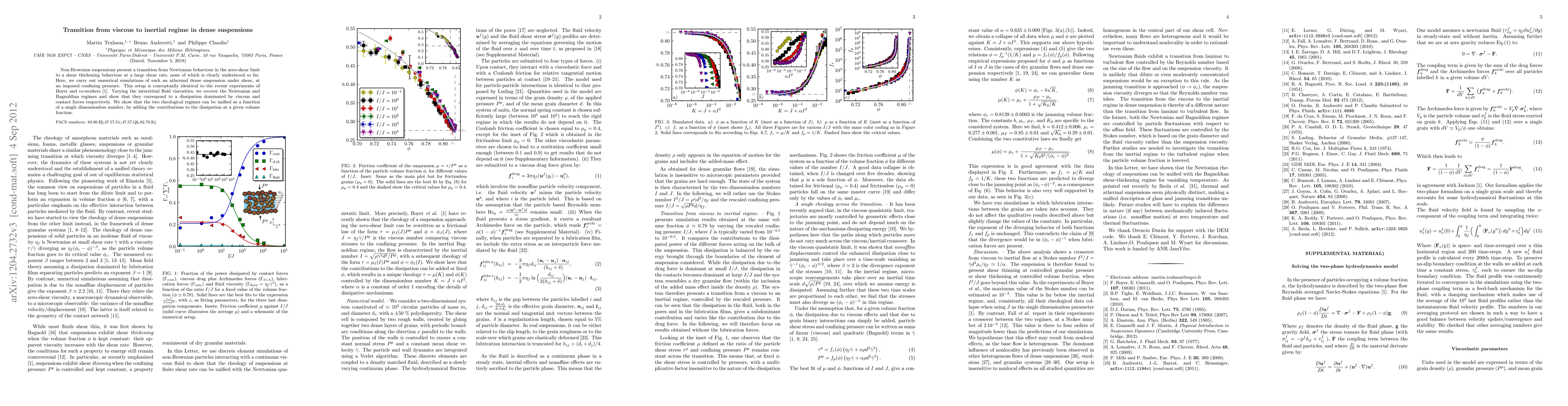 This paper investigates the transition in dense non-Brownian suspensions from viscous to inertial regimes through numerical simulations, revealing that Newtonian and shear thickening behaviors are governed by viscous and contact forces respectively, unified by a single dimensionless number.
