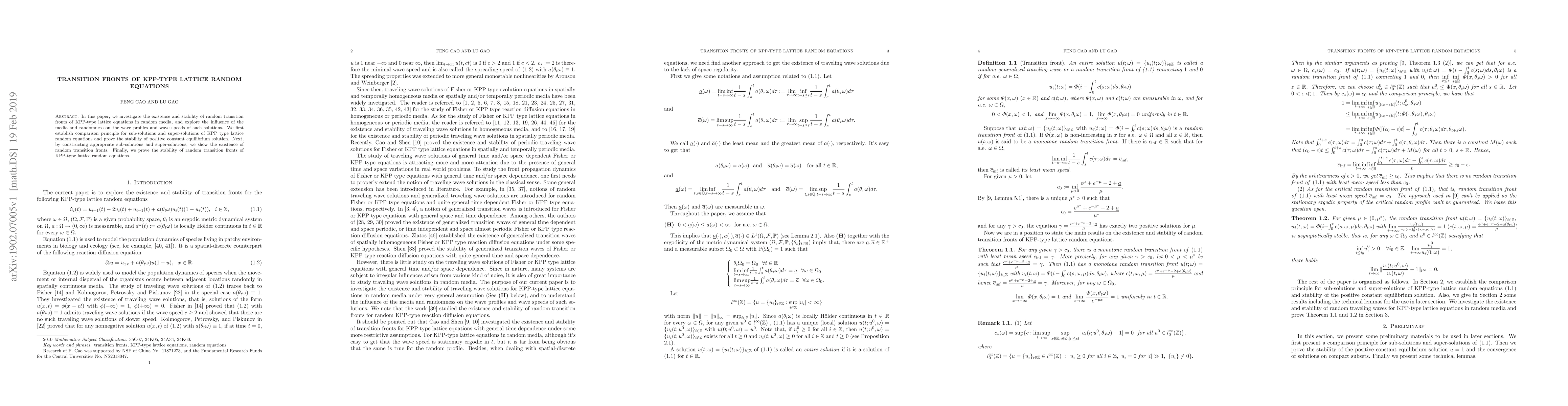 The paper presents a rigorous mathematical framework for analyzing the existence and stability of random transition fronts in KPP-type lattice equations with random media.