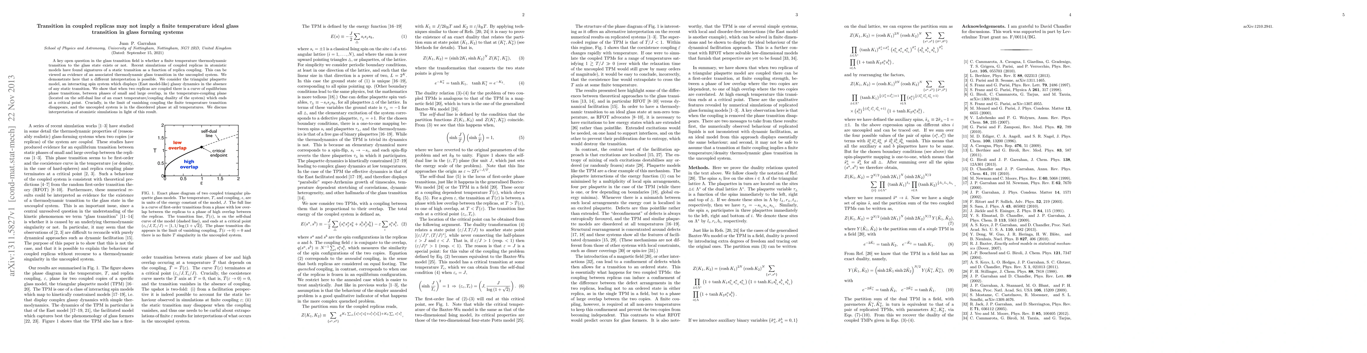 This paper argues that transitions observed in coupled replicas in simulations do not necessarily indicate a finite temperature glass transition in glass-forming systems. It demonstrates using the triangular plaquette model that such transitions can disappear in the uncoupled system, suggesting alternative interpretations for observed phenomena.
