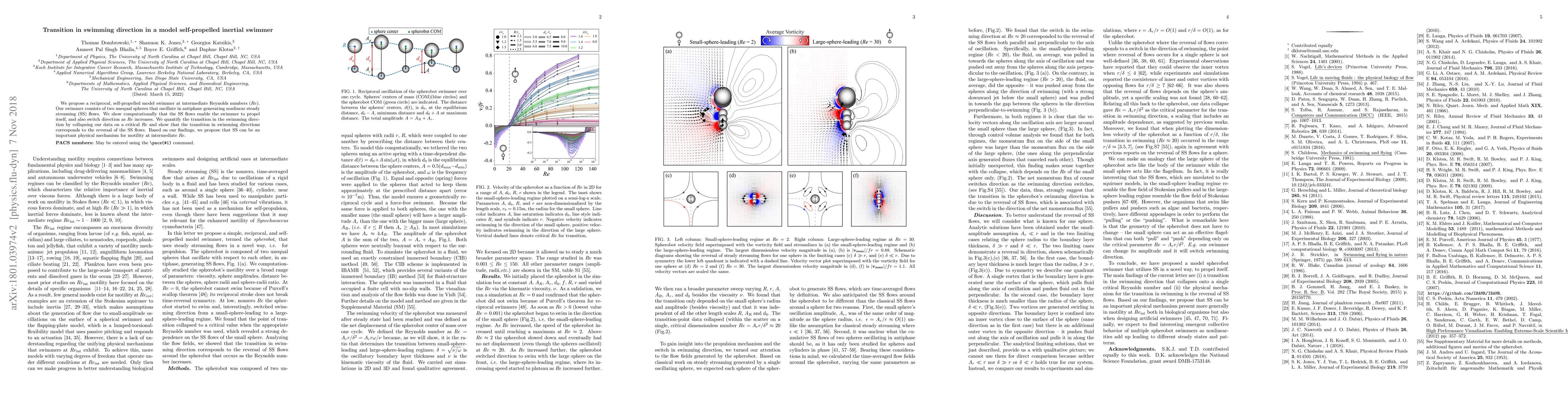 This paper proposes a self-propelled swimmer model consisting of two unequal oscillating spheres generating nonlinear steady streaming flows. Computational results show that the swimmer can propel itself and switch swimming direction as the Reynolds number increases, with the transition linked to the reversal of the steady streaming flows.