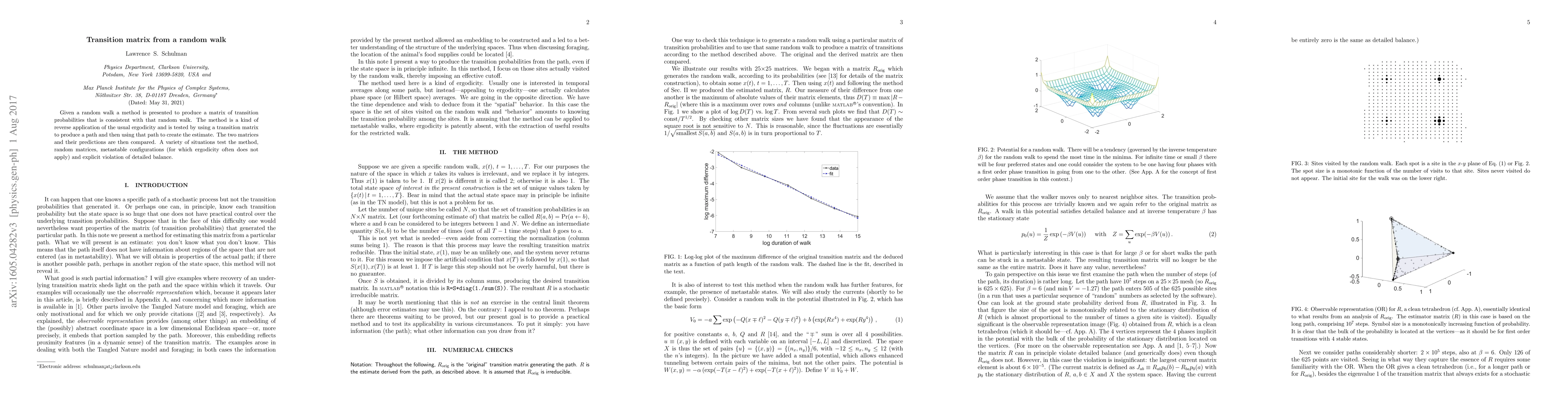 This paper presents a method to generate a transition probability matrix from a random walk, testing it by reversing the usual ergodicity approach. The method is validated by comparing the original random walk path with the path generated from the estimated transition matrix across various scenarios including random matrices and metastable configurations.