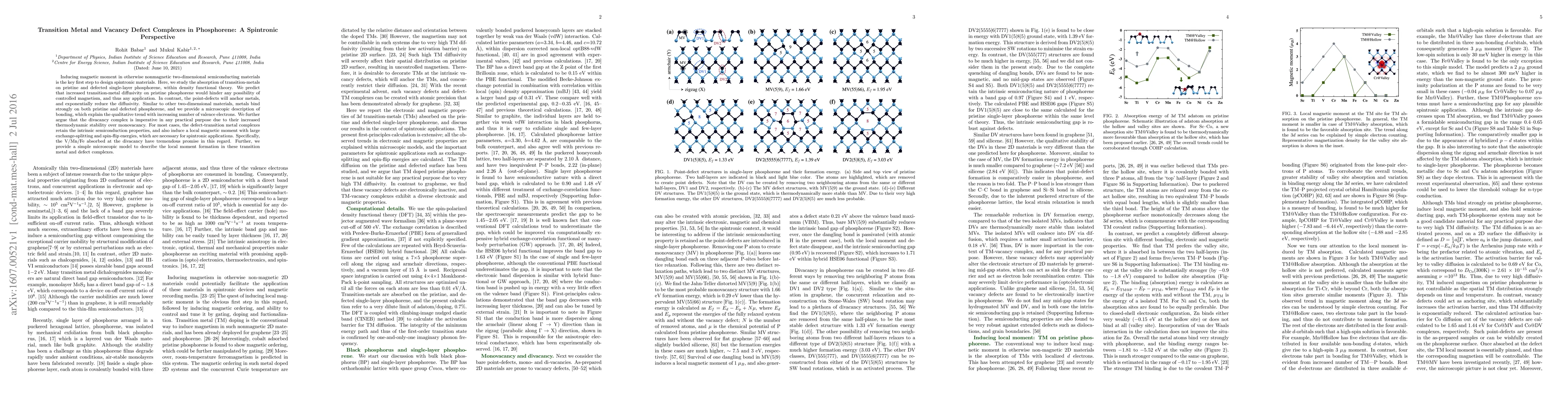 This paper investigates the magnetic properties of transition metals absorbed on pristine and defected phosphorene using density functional theory. It finds that while transition metals on pristine phosphorene hinder controlled magnetism, defects anchor metals and reduce diffusivity, enabling practical spintronic applications. Divacancy complexes, especially those involving V/Mn/Fe, show significant promise due to their stability and induced local magnetic moments.