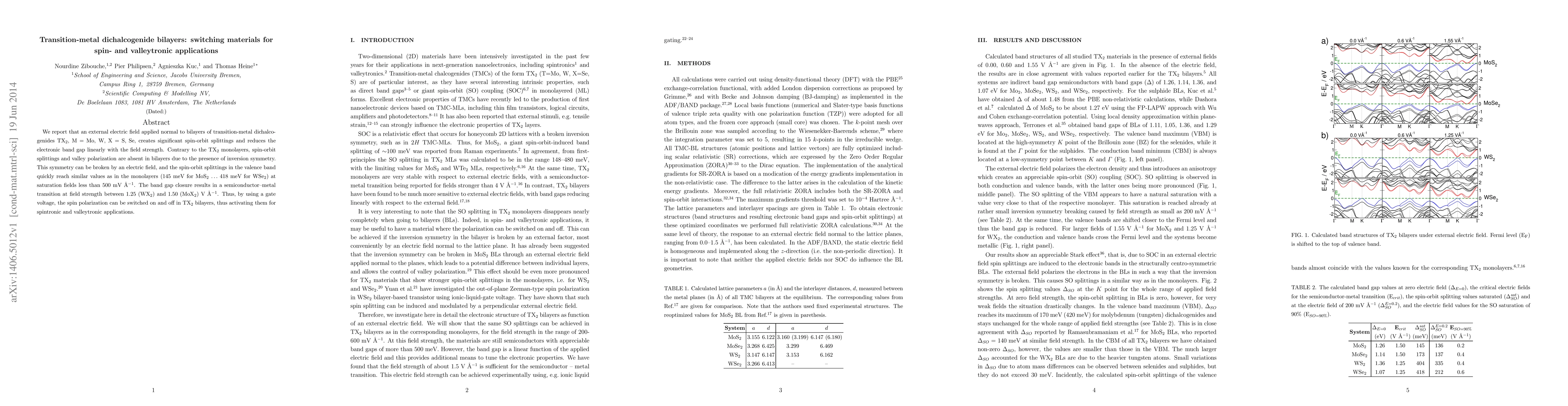 This paper demonstrates that bilayers of transition-metal dichalcogenides (TMDs) can be manipulated with an electric field to induce significant spin-orbit splittings and valley polarization, enabling semiconductor-metal transitions and potential spintronic and valleytronic applications. The electric field breaks inversion symmetry, activating these properties that are absent in monolayers.