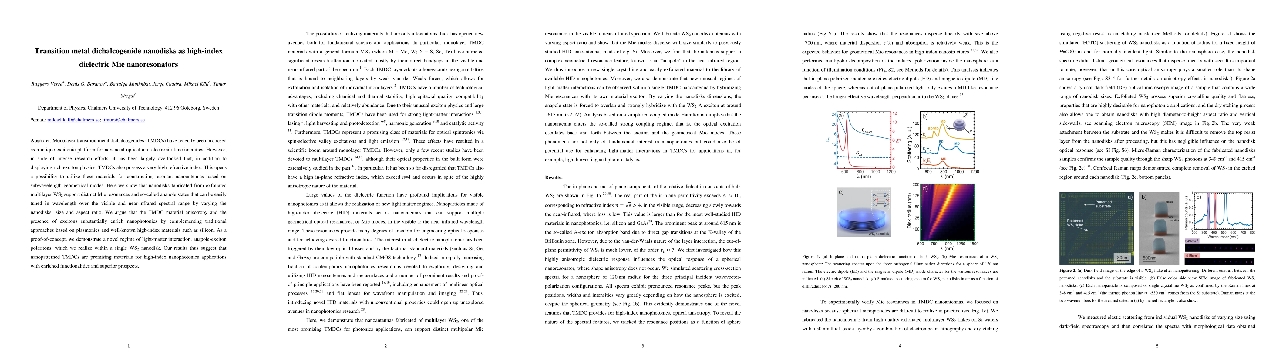 Researchers demonstrate that transition metal dichalcogenide nanodisks can support Mie resonances and anapole states, enabling novel light-matter interactions with enriched functionalities.