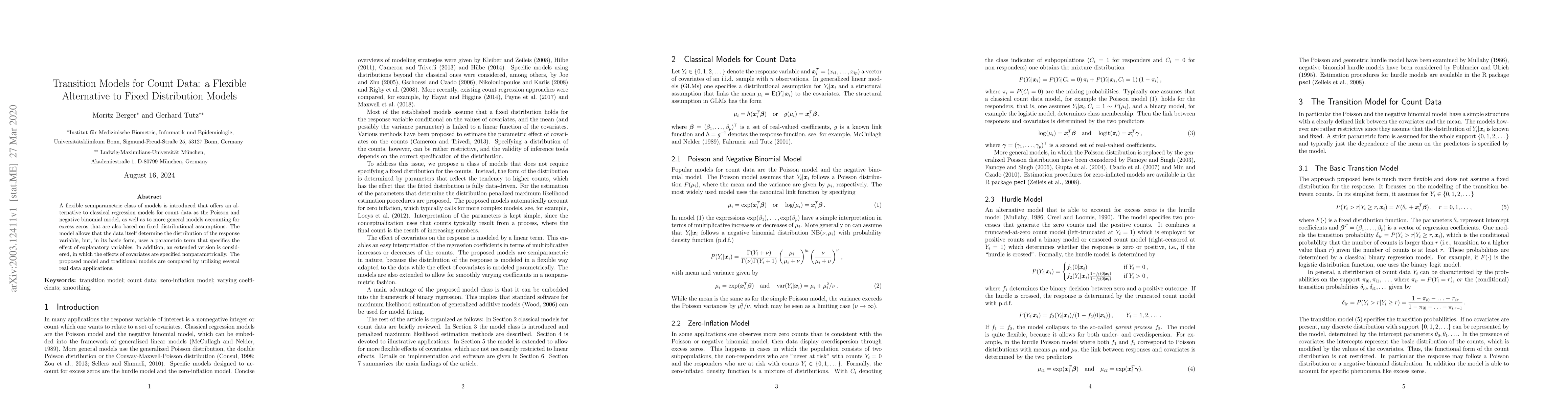 A flexible semiparametric class of models is introduced that offers an alternative to classical regression models for count data as the Poisson and negative binomial model, as well as to more general models accounting for excess zeros that are also based on fixed distributional assumptions. The model allows that the data itself determine the distribution of the response variable, but, in its basic form, uses a parametric term that specifies the effect of explanatory variables. In addition, an extended version is considered, in which the effects of covariates are specified nonparametrically. The proposed model and traditional models are compared by utilizing several real data applications.