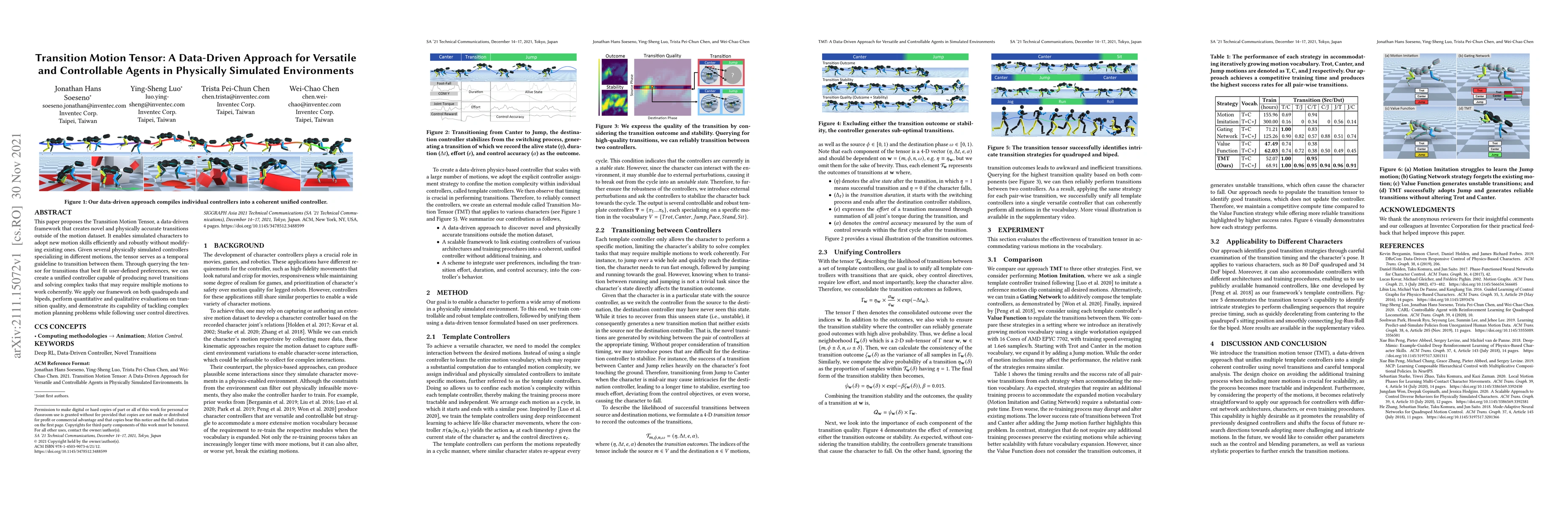 A new data-driven framework called the Transition Motion Tensor enables simulated characters to learn and control novel motions without modifying existing ones, improving their ability to solve complex tasks.
