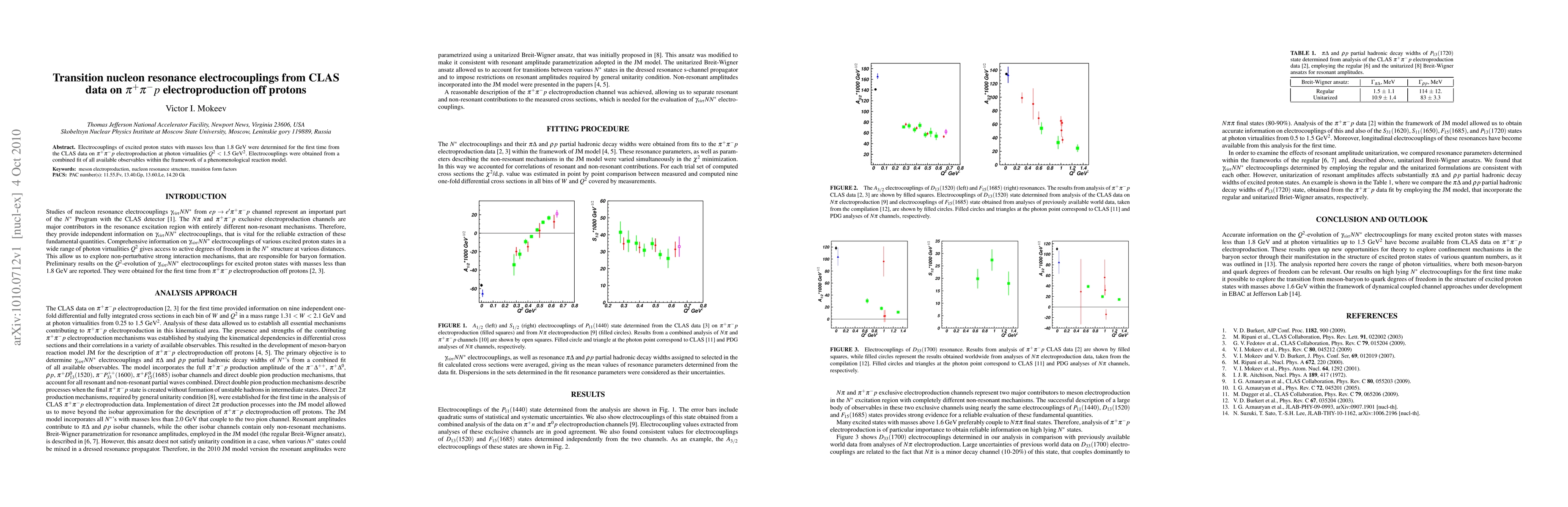 Electrocouplings of excited proton states with masses less than 1.8 GeV were determined for the first time from the CLAS data on $\pi^+\pi^-p$ electroproduction at photon virtualities $Q^2$ $<$ 1.5 GeV$^2$. Electrocouplings were obtained from a combined fit of all available observables within the framework of a phenomenological reaction model.