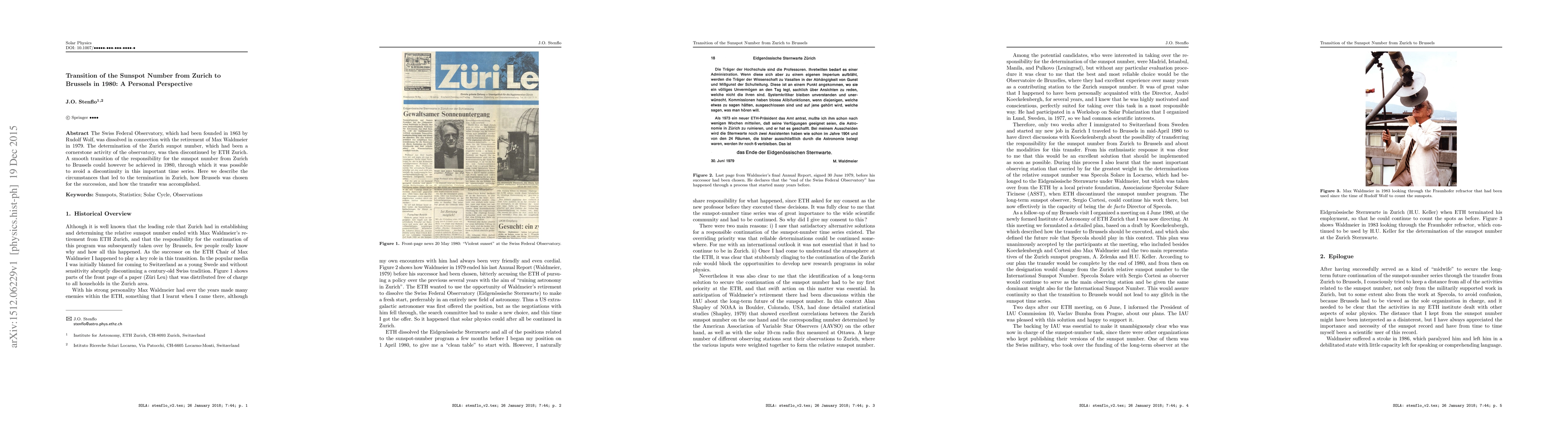 The Swiss Federal Observatory, which had been founded in 1863 by Rudolf Wolf, was dissolved in connection with the retirement of Max Waldmeier in 1979. The determination of the Zurich sunpot number, which had been a cornerstone activity of the observatory, was then discontinued by ETH Zurich. A smooth transition of the responsibility for the sunspot number from Zurich to Brussels could however be achieved in 1980, through which it was possible to avoid a discontinuity in this important time series. Here we describe the circumstances that led to the termination in Zurich, how Brussels was chosen for the succession, and how the transfer was accomplished.