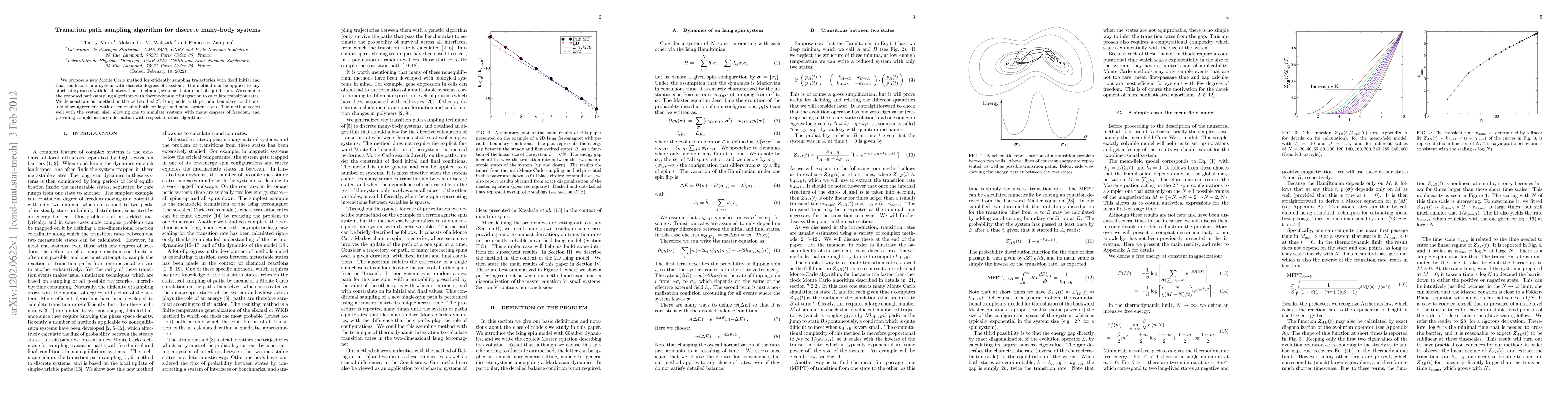 We propose a new Monte Carlo method for efficiently sampling trajectories with fixed initial and final conditions in a system with discrete degrees of freedom. The method can be applied to any stochastic process with local interactions, including systems that are out of equilibrium. We combine the proposed path-sampling algorithm with thermodynamic integration to calculate transition rates. We demonstrate our method on the well studied 2D Ising model with periodic boundary conditions, and show agreement with other results both for large and small system sizes. The method scales well with the system size, allowing one to simulate systems with many degrees of freedom, and providing complementary information with respect to other algorithms.