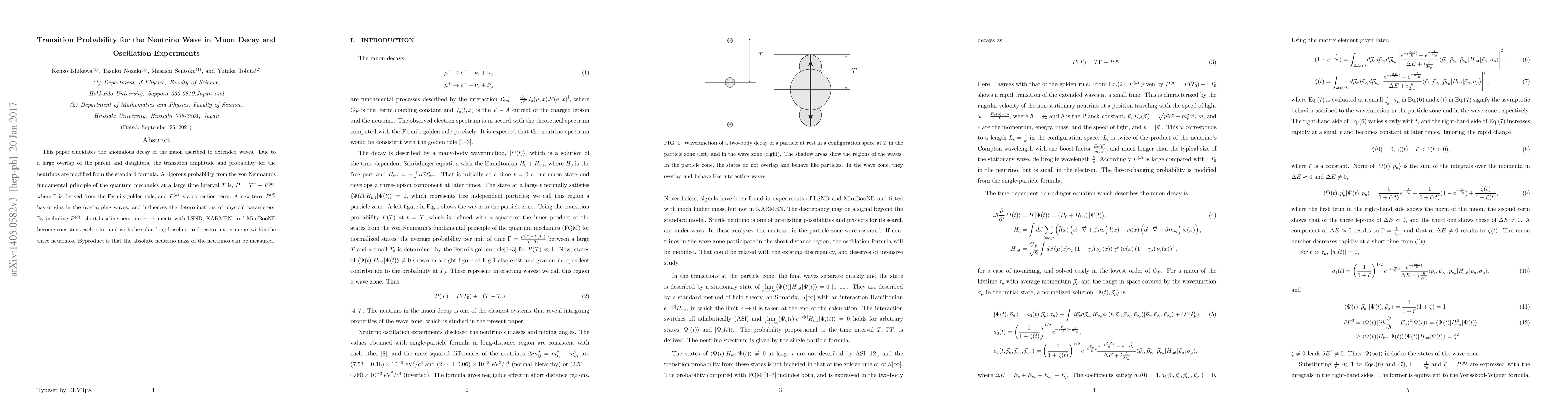 This paper elucidates the anomalous decay of the muon ascribed to extended waves. Due to a large overlap of the parent and daughters, the transition amplitude and probability for the neutrinos are modified from the standard formula. A rigorous probability from the von Neumann's fundamental principle of the quantum mechanics at a large time interval $T$ is, $P=T\Gamma + P^{(d)}$, where $\Gamma$ is derived from the Fermi's golden rule, and $P^{(d)}$ is a correction term. A new term $P^{(d)}$ has origins in the overlapping waves, and influences the determinations of physical parameters. By including $P^{(d)}$, short-baseline neutrino experiments with LSND, KARMEN, and MiniBooNE become consistent each other and with the solar, long-baseline, and reactor experiments within the three neutrinos. Byproduct is that the absolute neutrino mass of the neutrinos can be measured.