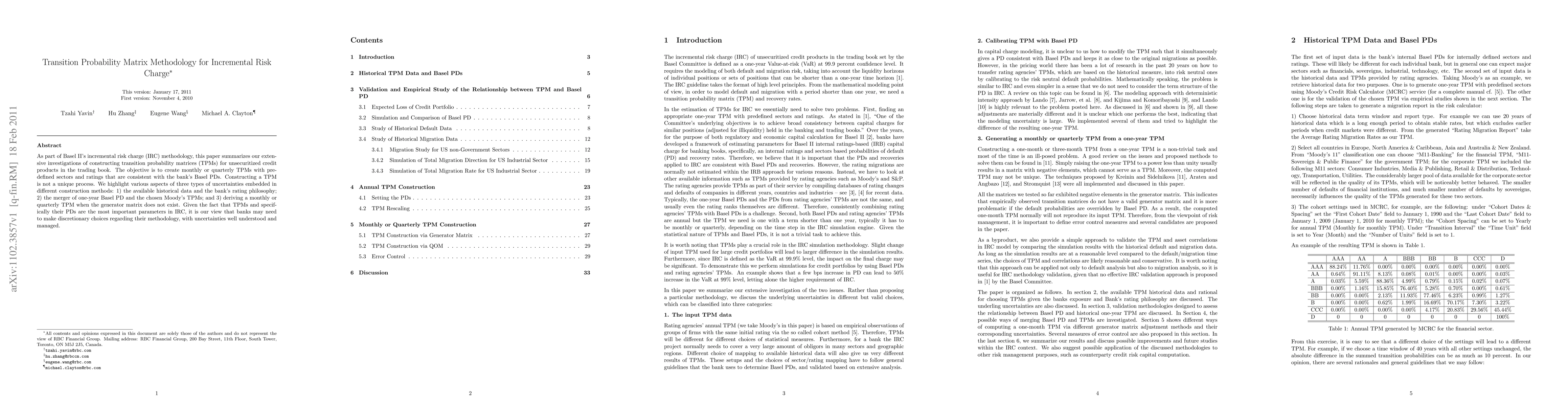 This paper investigates constructing transition probability matrices (TPMs) for unsecuritized credit products under Basel II's incremental risk charge (IRC) methodology, focusing on uncertainties in data, rating philosophies, and matrix derivation. Banks are advised to manage these uncertainties while making discretionary choices in their TPM construction.