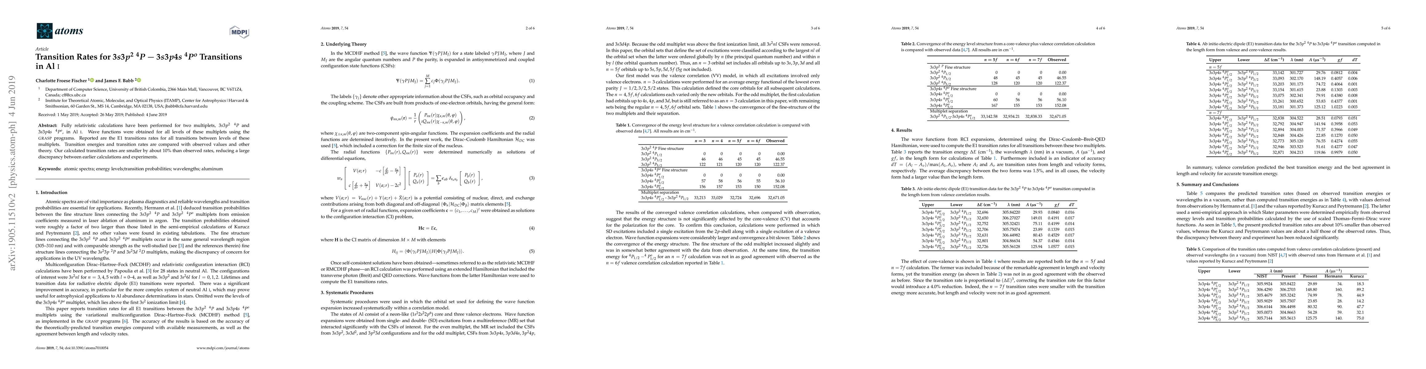 Fully relativistic calculations have been performed for two multiplets, $3s3p^2\;^4P$ and $3s3p4s\;^4P^o$, in Al I. Wave functions were obtained for all levels of these multiplets using the GRASP programs. Reported are the E1 transitions rates for all transitions between levels of these multiplets. Transition energies and transition rates are compared with observed values and other theory. Our calculated transition rates are smaller by about 10% than observed rates, reducing a large discrepancy between earlier calculations and experiment.