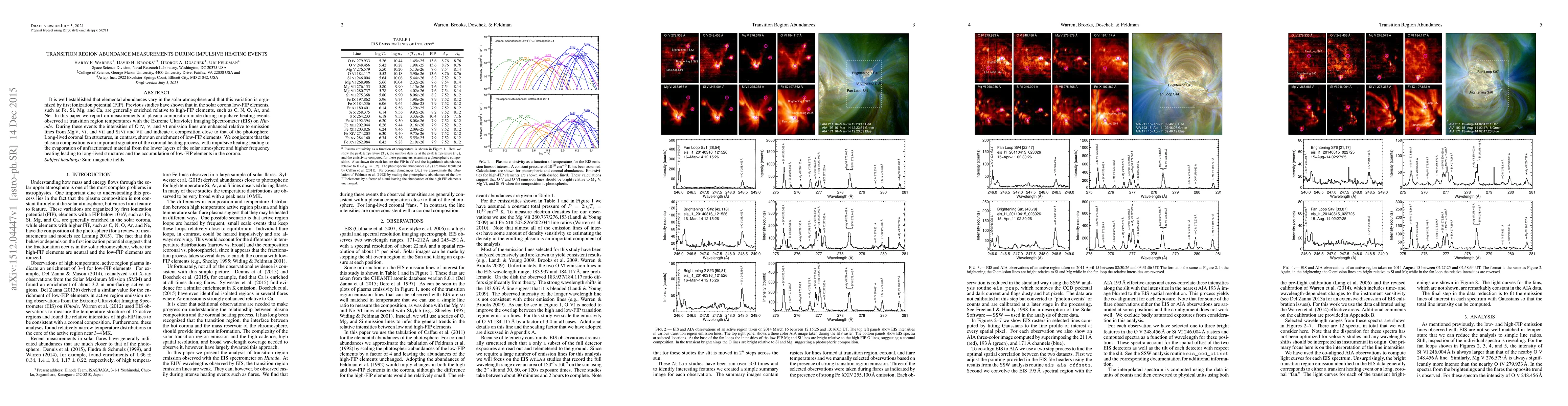 This paper reports on plasma composition measurements during impulsive heating events in the solar transition region, revealing that these events enhance the intensities of low-FIP elements relative to high-FIP elements, resembling photospheric composition. In contrast, long-lived coronal structures show an enrichment of low-FIP elements, suggesting different heating processes.