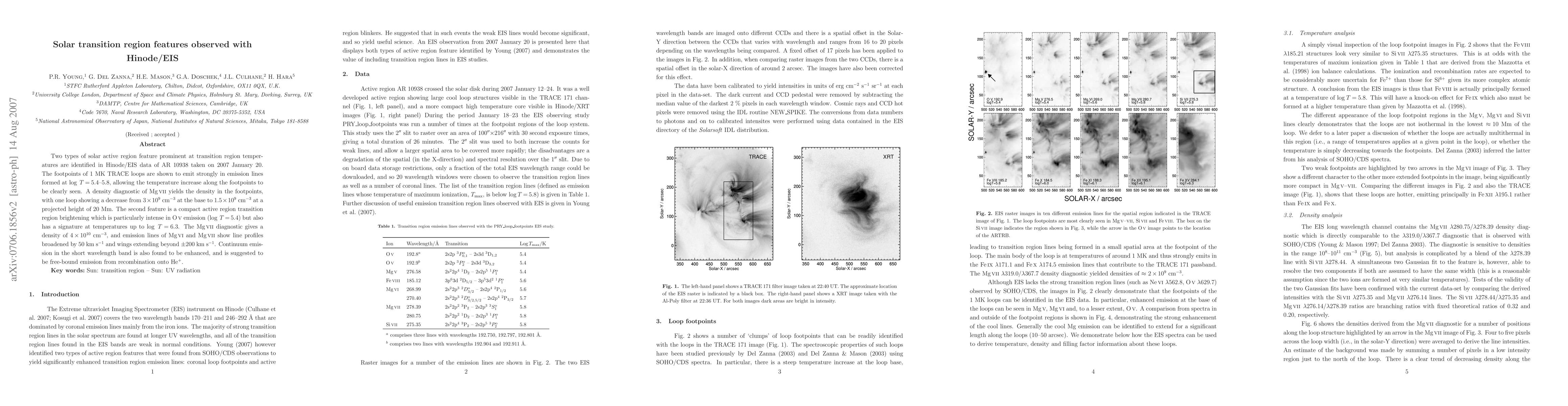The paper presents a detailed analysis of transition region features using Hinode/EIS data, providing accurate density and temperature measurements for active region loop footpoints and transient brightenings.