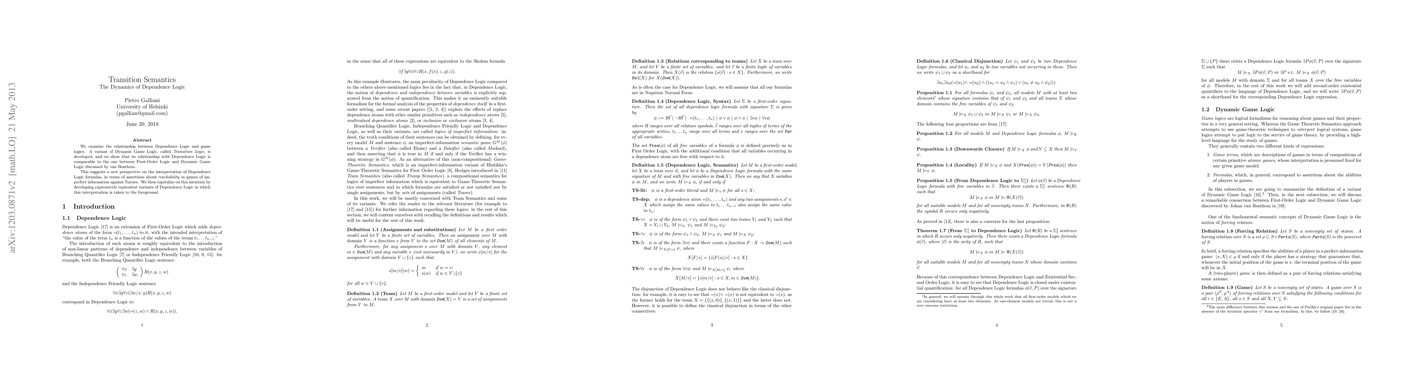 This paper develops Transition Logic, a variant of Dynamic Game Logic, and demonstrates its equivalence to Dependence Logic, suggesting a new interpretation of Dependence Logic in terms of reachability in games of imperfect information. This offers a fresh perspective on the semantics of Dependence Logic.