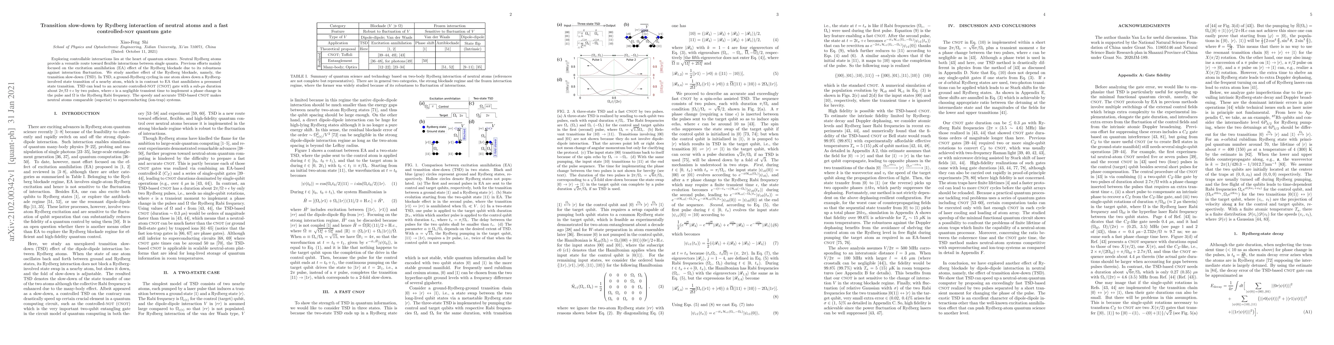 This paper investigates the transition slow-down (TSD) effect of Rydberg blockade in neutral atoms, demonstrating its potential for creating a fast and accurate controlled-NOT (CNOT) quantum gate. The TSD-based CNOT gate operates in sub-microsecond duration, making neutral atoms competitive with superconducting and ion-trap systems.