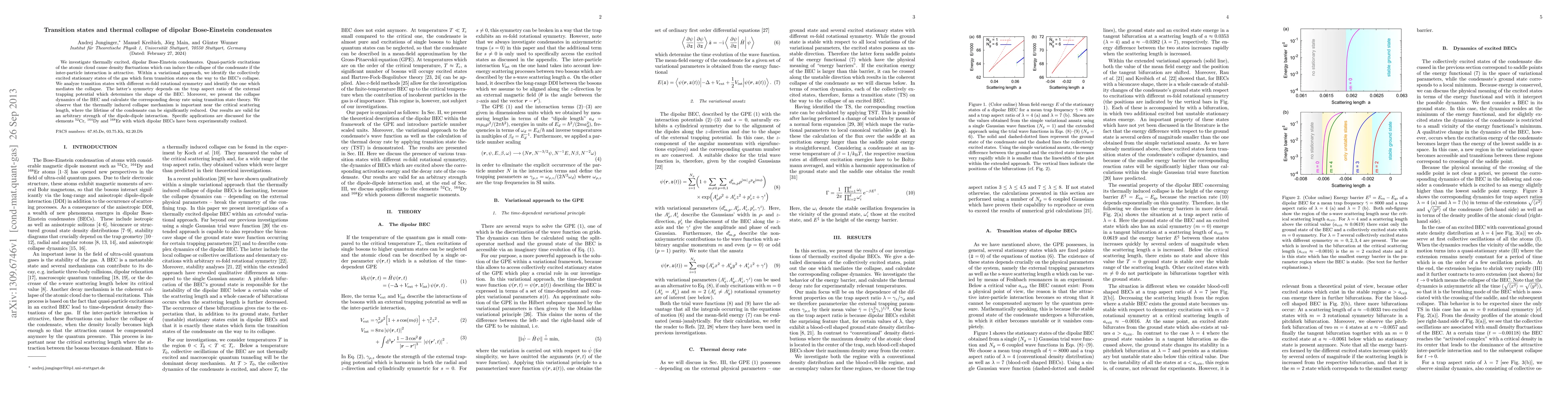 This paper explores thermally excited dipolar Bose-Einstein condensates, identifying transition states that lead to collapse due to quasi-particle excitations. The study reveals the collapse dynamics and decay rate, emphasizing the importance of the collapse mechanism near the critical scattering length.