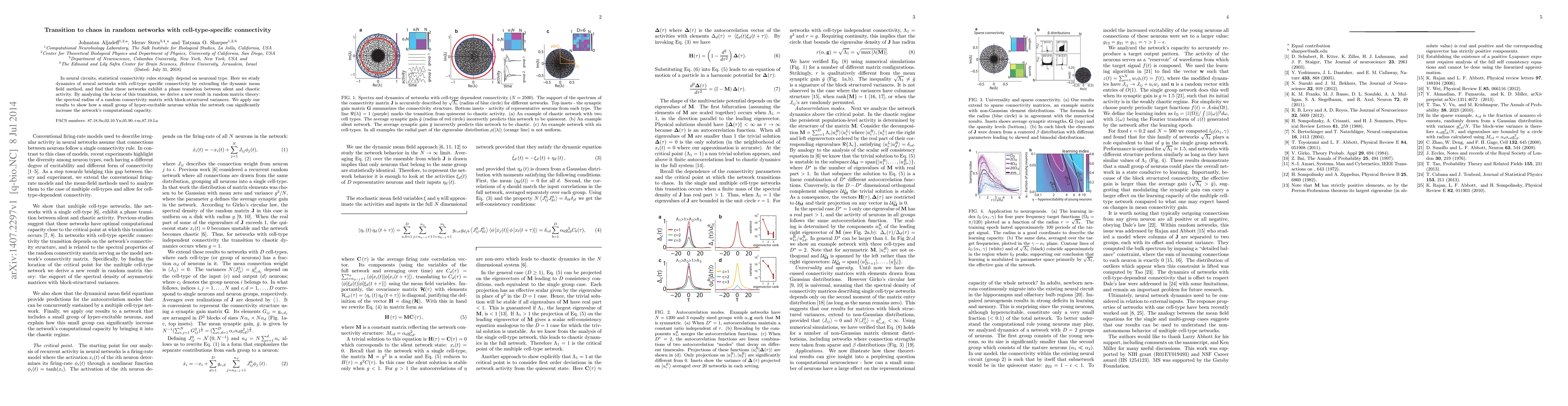This paper explores the dynamics of neural networks with cell-type-specific connectivity, revealing a phase transition from silent to chaotic activity using an extended dynamic mean field method. The study introduces a new result in random matrix theory regarding the spectral radius of block-structured variances in random connectivity matrices, demonstrating how a small group of hyper-excitable neurons enhances network computational capacity.