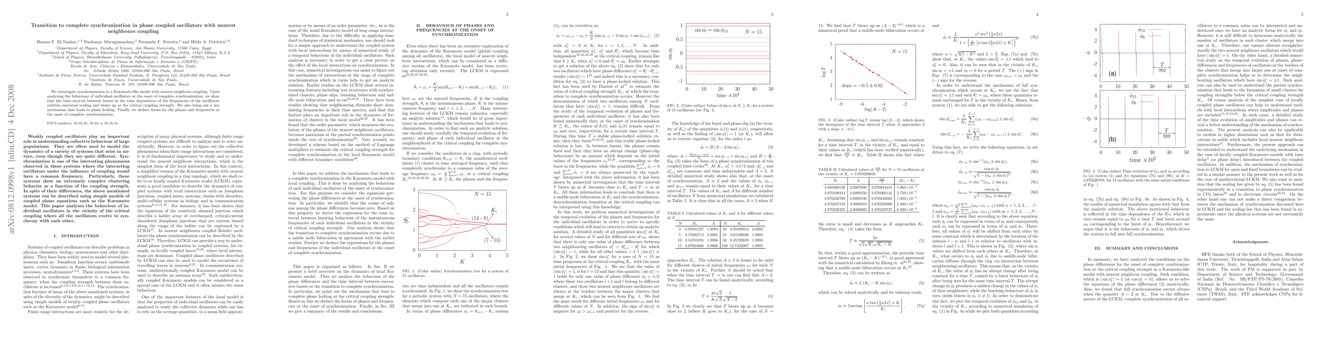 We investigate synchronization in a Kuramoto-like model with nearest neighbour coupling. Upon analyzing the behaviour of individual oscillators at the onset of complete synchronization, we show that the time interval between bursts in the time dependence of the frequencies of the oscillators exhibits universal scaling and blows up at the critical coupling strength. We also bring out a key mechanism that leads to phase locking. Finally, we deduce forms for the phases and frequencies at the onset of complete synchronization.
