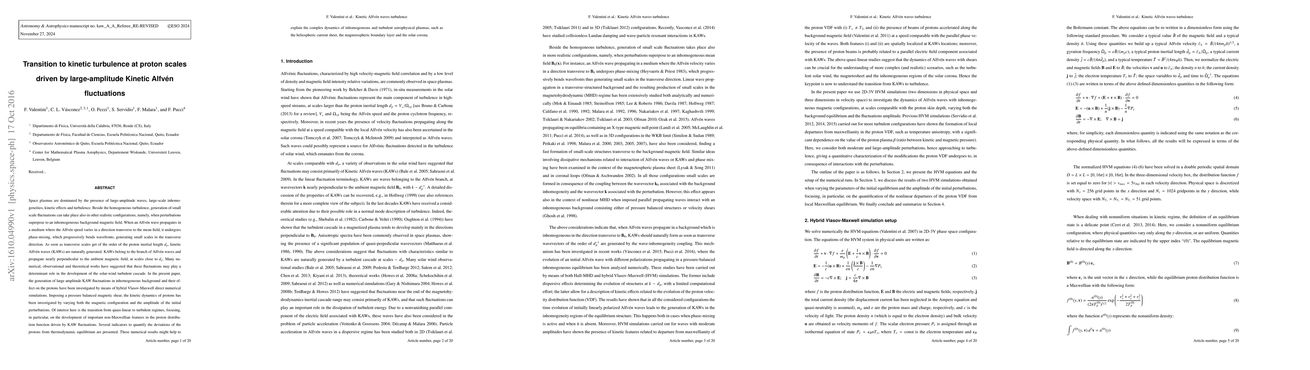 Space plasmas are dominated by the presence of large-amplitude waves, large-scale inhomogeneities, kinetic effects and turbulence. Beside the homogeneous turbulence, generation of small scale fluctuations can take place also in other realistic configurations, namely, when perturbations superpose to an inhomogeneous background magnetic field. When an Alfv\'en wave propagates in a medium where the Alfv\'en speed varies in a direction transverse to the mean field, it undergoes phase-mixing, which progressively bends wavefronts, generating small scales in the transverse direction. As soon as transverse scales get of the order of the proton inertial length $d_p$, kinetic Alfv\'en waves (KAWs) are naturally generated. KAWs belong to the branch of Alfv\'en waves and propagate nearly perpendicular to the ambient magnetic field, at scales close to $d_p$. Many numerical, observational and theoretical works have suggested that these fluctuations may play a determinant role in the development of the solar-wind turbulent cascade. In the present paper, the generation of large amplitude KAW fluctuations in inhomogeneous background and their effect on the protons have been investigated by means of hybrid Vlasov-Maxwell direct numerical simulations. Imposing a pressure balanced magnetic shear, the kinetic dynamics of protons has been investigated by varying both the magnetic configuration and the amplitude of the initial perturbations. Of interest here is the transition from quasi-linear to turbulent regimes, focusing, in particular, on the development of important non-Maxwellian features in the proton distribution function driven by KAW fluctuations.
