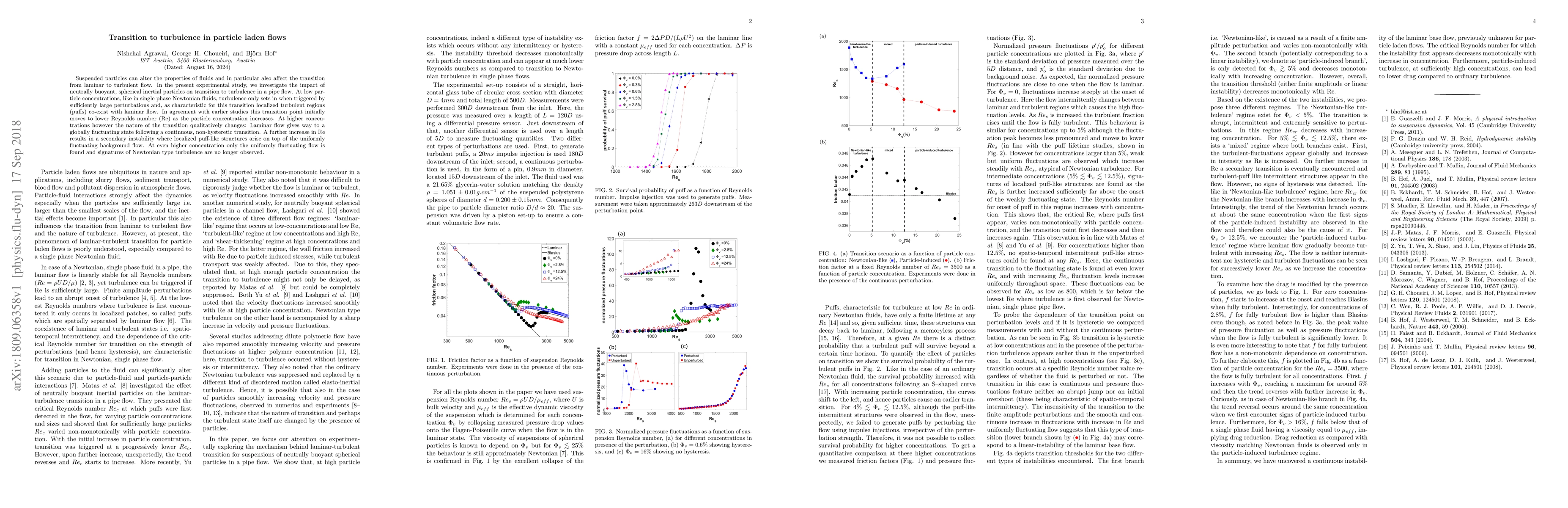 Suspended particles can alter the properties of fluids and in particular also affect the transition from laminar to turbulent flow. In the present experimental study, we investigate the impact of neutrally buoyant, spherical inertial particles on transition to turbulence in a pipe flow. At low particle concentrations, like in single phase Newtonian fluids, turbulence only sets in when triggered by sufficiently large perturbations and, as characteristic for this transition localized turbulent regions (puffs) co-exist with laminar flow. In agreement with earlier studies this transition point initially moves to lower Reynolds number (Re) as the particle concentration increases. At higher concentrations however the nature of the transition qualitatively changes: Laminar flow gives way to a globally fluctuating state following a continuous, non-hysteretic transition. A further increase in Re results in a secondary instability where localized puff-like structures arise on top of the uniformly fluctuating background flow. At even higher concentration only the uniformly fluctuating flow is found and signatures of Newtonian type turbulence are no longer observed.