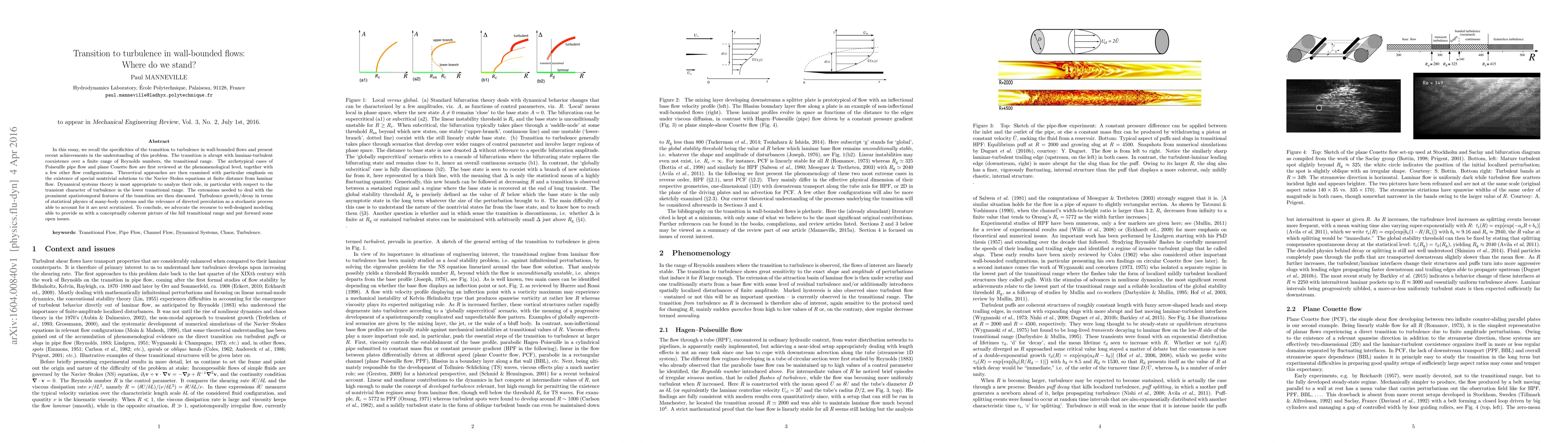 In this essay, we recall the specificities of the transition to turbulence in wall-bounded flows and present recent achievements in the understanding of this problem. The transition is abrupt with laminar-turbulent coexistence over a finite range of Reynolds numbers, the transitional range. The archetypical cases of Poiseuille pipe flow and plane Couette flow are first reviewed at the phenomenological level, together with a few other flow configurations. Theoretical approaches are then examined with particular emphasis on the existence of special nontrivial solutions to the Navier-Stokes equations at finite distance from laminar flow. Dynamical systems theory is most appropriate to analyze their role, in particular with respect to the transient character of turbulence in the lower transitional range. The extensions needed to deal with the prominent spatiotemporal features of the transition are then discussed. Turbulence growth/decay in terms of statistical physics of many-body systems and the relevance of directed percolation as a stochastic process able to account for it are next scrutinized. To conclude, we advocate the recourse to well-designed modeling able to provide us with a conceptually coherent picture of the full transitional range and put forward some open issues.