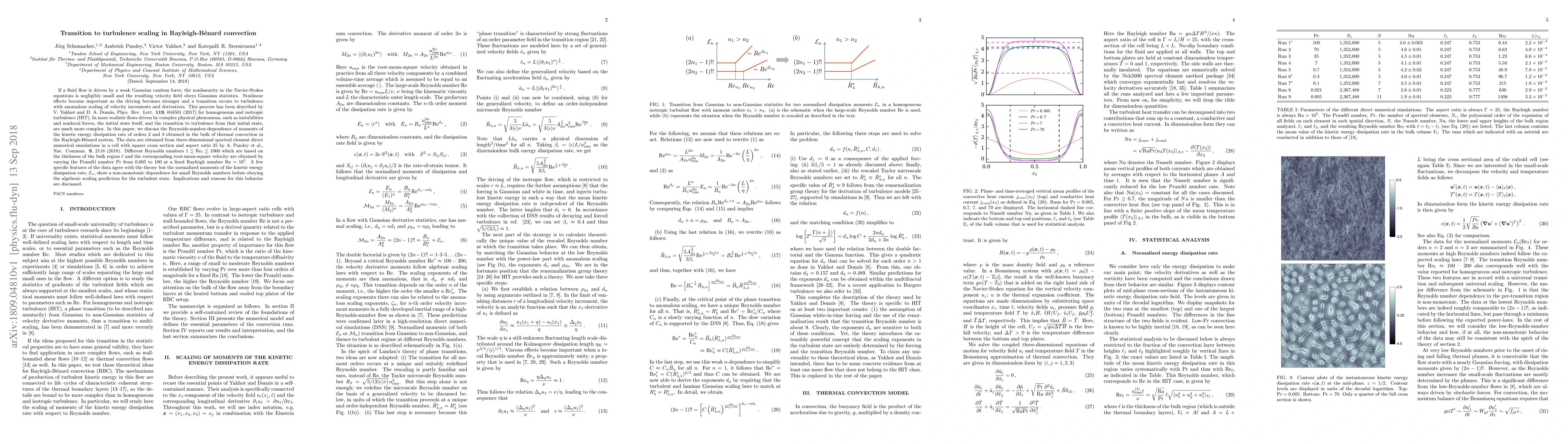 If a fluid flow is driven by a weak Gaussian random force, the nonlinearity in the Navier-Stokes equations is negligibly small and the resulting velocity field obeys Gaussian statistics. Nonlinear effects become important as the driving becomes stronger and a transition occurs to turbulence with anomalous scaling of velocity increments and derivatives. This process has been described by V. Yakhot and D. A. Donzis, Phys. Rev. Lett. 119, 044501 (2017) for homogeneous and isotropic turbulence (HIT). In more realistic flows driven by complex physical phenomena, such as instabilities and nonlocal forces, the initial state itself, and the transition to turbulence from that initial state, are much more complex. In this paper, we discuss the Reynolds-number-dependence of moments of the kinetic energy dissipation rate of orders 2 and 3 obtained in the bulk of thermal convection in the Rayleigh-B\'{e}nard system. The data are obtained from three-dimensional spectral element direct numerical simulations in a cell with square cross section and aspect ratio 25 by A. Pandey et al., Nat. Commun. 9, 2118 (2018). Different Reynolds numbers $1 \lesssim {\rm Re}_{\ell} \lesssim 1000$ which are based on the thickness of the bulk region $\ell$ and the corresponding root-mean-square velocity are obtained by varying the Prandtl number Pr from 0.005 to 100 at a fixed Rayleigh number ${\rm Ra}=10^5$. A few specific features of the data agree with the theory but the normalized moments of the kinetic energy dissipation rate, ${\cal E}_n$, show a non-monotonic dependence for small Reynolds numbers before obeying the algebraic scaling prediction for the turbulent state. Implications and reasons for this behavior are discussed.