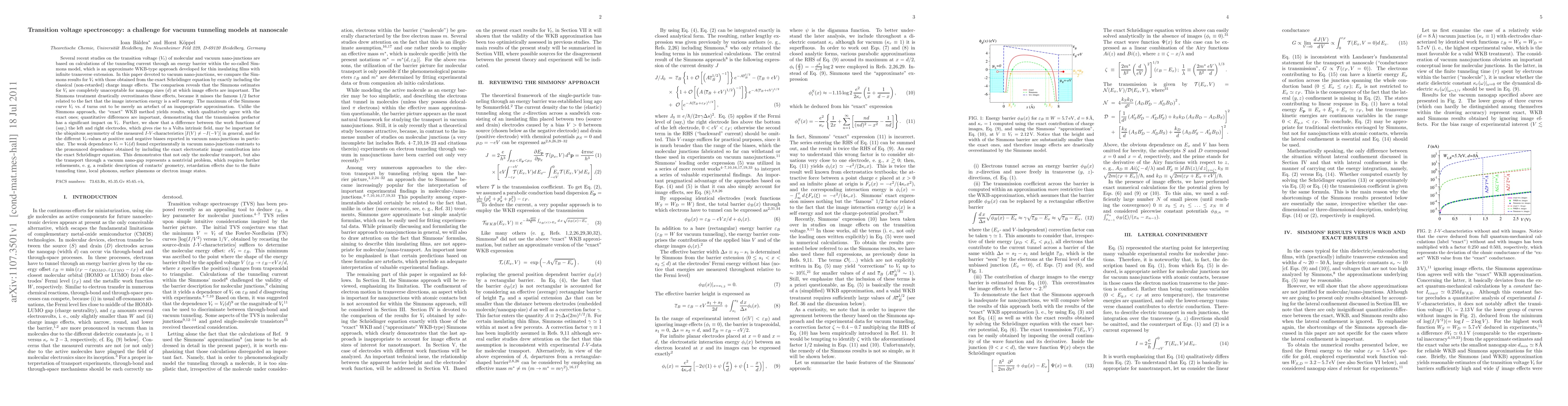 This paper compares the transition voltage ($V_t$) estimates from the Simmons model with those from the exact Schrödinger equation for vacuum nano-junctions, revealing that Simmons' model overestimates the tunneling current due to missing the 1/2 factor in image effects. The "exact" WKB method provides results that qualitatively agree with the Schrödinger equation, highlighting the need for further refinements in vacuum tunneling models.