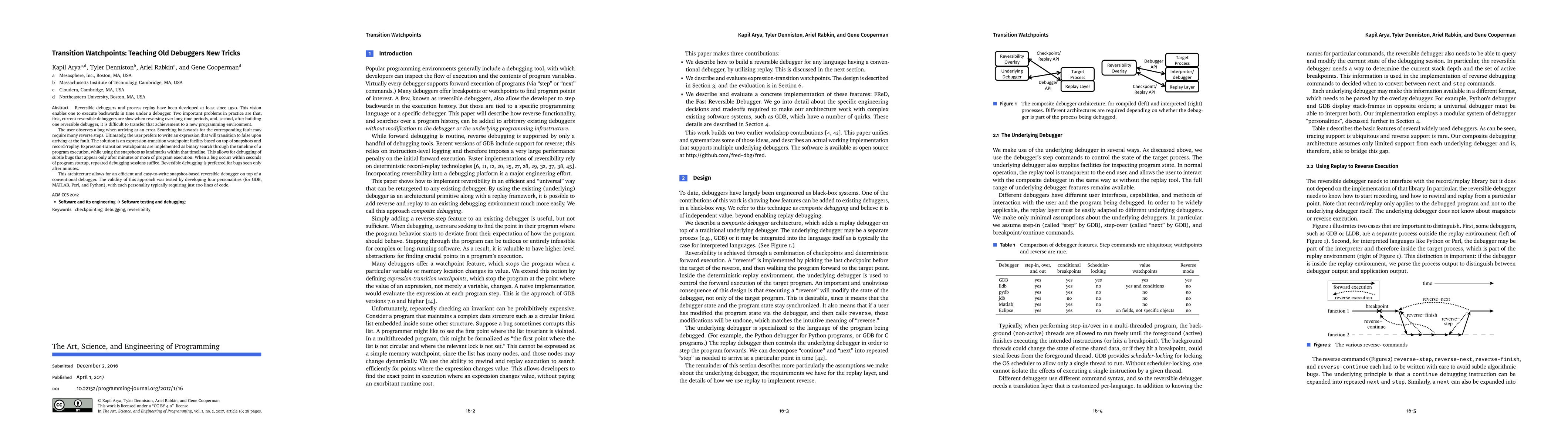 Reversible debuggers and process replay have been developed at least since 1970. This vision enables one to execute backwards in time under a debugger. Two important problems in practice are that, first, current reversible debuggers are slow when reversing over long time periods, and, second, after building one reversible debugger, it is difficult to transfer that achievement to a new programming environment. The user observes a bug when arriving at an error. Searching backwards for the corresponding fault may require many reverse steps. Ultimately, the user prefers to write an expression that will transition to false upon arriving at the fault. The solution is an expression-transition watchpoint facility based on top of snapshots and record/replay. Expression-transition watch- points are implemented as binary search through the timeline of a program execution, while using the snapshots as landmarks within that timeline. This allows for debugging of subtle bugs that appear only after minutes or more of program execution. When a bug occurs within seconds of program startup, repeated debugging sessions suffice. Reversible debugging is preferred for bugs seen only after minutes. This architecture allows for an efficient and easy-to-write snapshot-based reversibe debugger on top of a conventional debugger. The validity of this approach was tested by developing four personalities (for GDB, MATLAB, Perl, and Python), with each personality typically requiring just 100 lines of code.