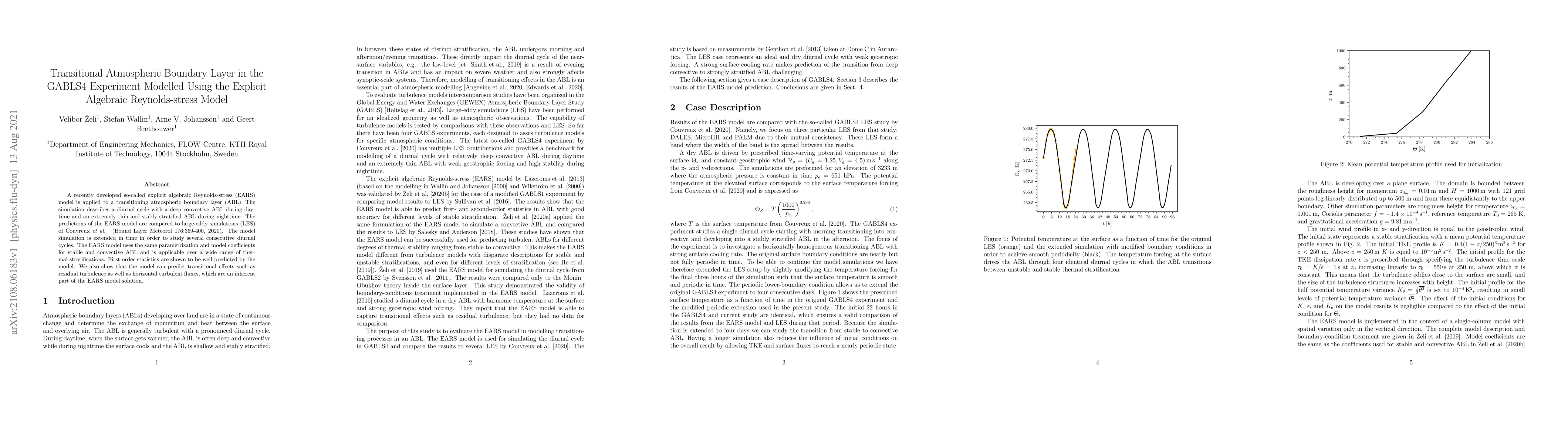 This paper applies an explicit algebraic Reynolds-stress model to simulate a transitional atmospheric boundary layer, comparing its predictions to large-eddy simulations. The model successfully predicts first-order statistics and transitional effects like residual turbulence over multiple diurnal cycles.