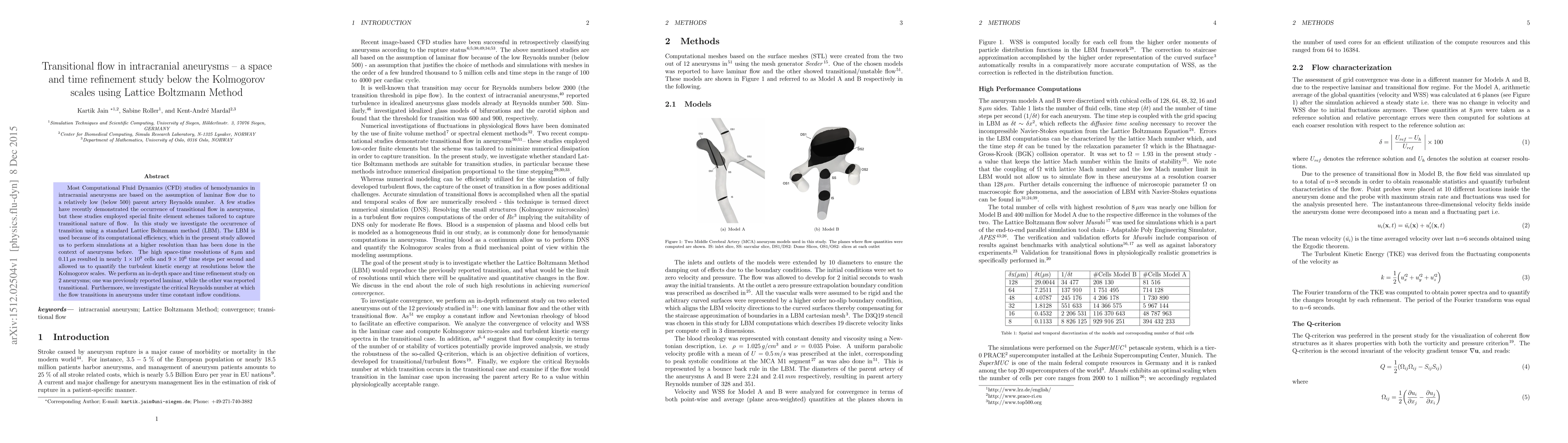 This study employs the Lattice Boltzmann Method (LBM) to investigate transitional flow in intracranial aneurysms at high space-time resolutions, revealing turbulent kinetic energy below Kolmogorov scales. The refined simulations on two aneurysms—one previously reported as laminar and the other transitional—quantify the critical Reynolds number for flow transition.