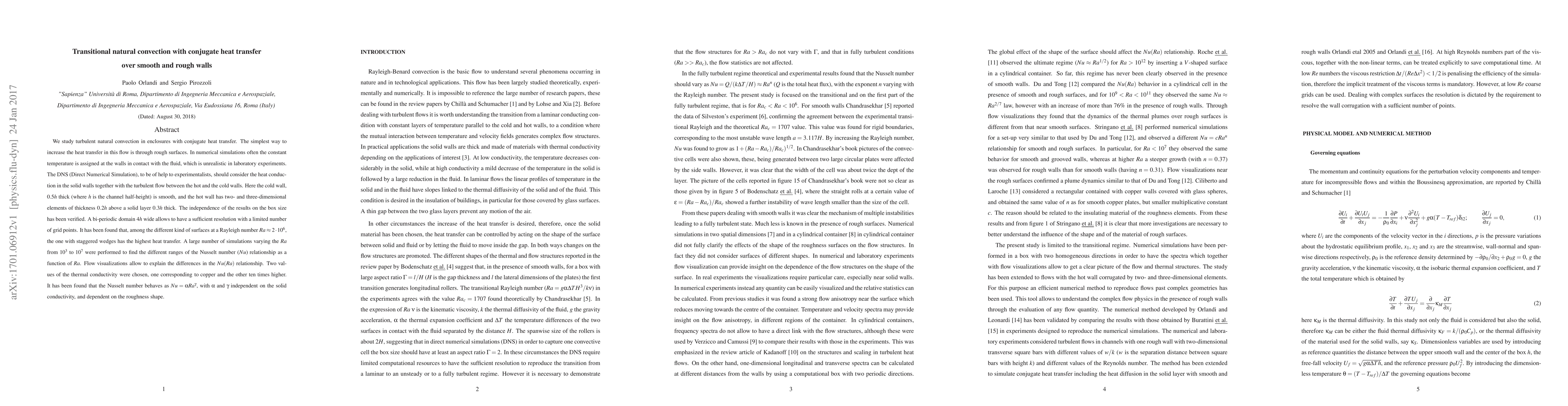We study turbulent natural convection in enclosures with conjugate heat transfer. The simplest way to increase the heat transfer in this flow is through rough surfaces. In numerical simulations often the constant temperature is assigned at the walls in contact with the fluid, which is unrealistic in laboratory experiments. The DNS (Direct Numerical Simulation), to be of help to experimentalists, should consider the heat conduction in the solid walls together with the turbulent flow between the hot and the cold walls. Here the cold wall, $0.5h$ thick (where $h$ is the channel half-height) is smooth, and the hot wall has two- and three-dimensional elements of thickness $0.2h$ above a solid layer $0.3h$ thick. The independence of the results on the box size has been verified. A bi-periodic domain $4h$ wide allows to have a sufficient resolution with a limited number of grid points. It has been found that, among the different kind of surfaces at a Rayleigh number $Ra \approx 2 \cdot 10^6$, the one with staggered wedges has the highest heat transfer. A large number of simulations varying the $Ra$ from $10^3$ to $10^7$ were performed to find the different ranges of the Nusselt number ($Nu$) relationship as a function of $Ra$. Flow visualizations allow to explain the differences in the $Nu(Ra)$ relationship. Two values of the thermal conductivity were chosen, one corresponding to copper and the other ten times higher. It has been found that the Nusselt number behaves as $Nu=\alpha Ra^\gamma$, with $\alpha$ and $\gamma$ independent on the solid conductivity, and dependent on the roughness shape.