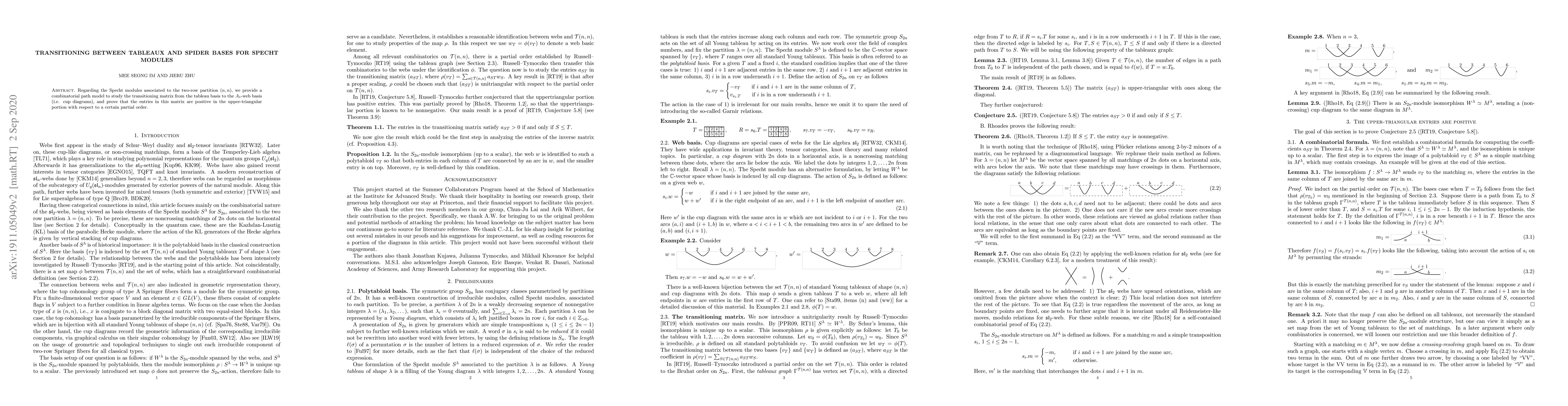 Regarding the Specht modules associated to the two-row partition $(n,n)$, we provide a combinatorial path model to study the transitioning matrix from the tableau basis to the $A_1$-web basis (i.e. cup diagrams), and prove that the entries in this matrix are positive in the upper-triangular portion with respect to a certain partial order.