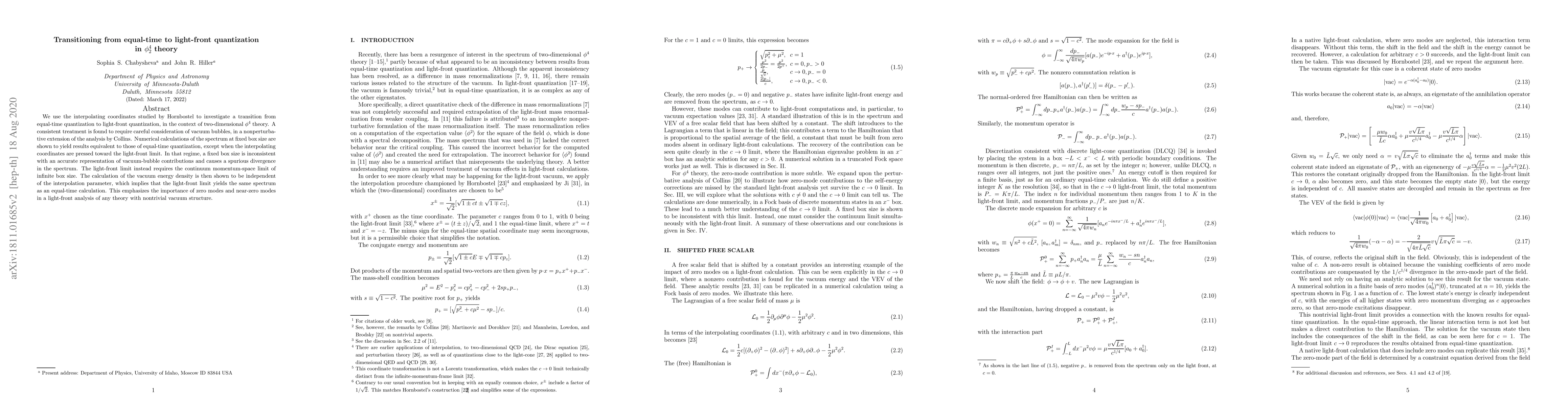 We use the interpolating coordinates studied by Hornbostel to investigate a transition from equal-time quantization to light-front quantization, in the context of two-dimensional $\phi^4$ theory. A consistent treatment is found to require careful consideration of vacuum bubbles, in a nonperturbative extension of the analysis by Collins. Numerical calculations of the spectrum at fixed box size are shown to yield results equivalent to those of equal-time quantization, except when the interpolating coordinates are pressed toward the light-front limit. In that regime, a fixed box size is inconsistent with an accurate representation of vacuum-bubble contributions and causes a spurious divergence in the spectrum. The light-front limit instead requires the continuum momentum-space limit of infinite box size. The calculation of the vacuum energy density is then shown to be independent of the interpolation parameter, which implies that the light-front limit yields the same spectrum as an equal-time calculation. This emphasizes the importance of zero modes and near-zero modes in a light-front analysis of any theory with nontrivial vacuum structure.