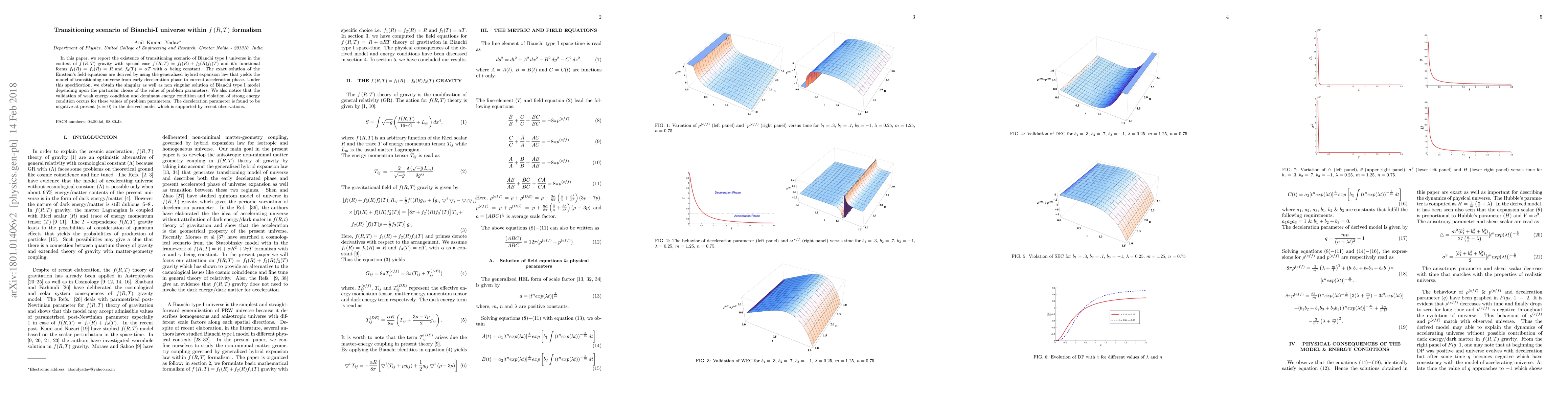 The paper presents exact solutions for the field equations in $f(R,T)$ gravity with a specific form, demonstrating a transitioning Bianchi-I universe from deceleration to acceleration phase and validating energy conditions.