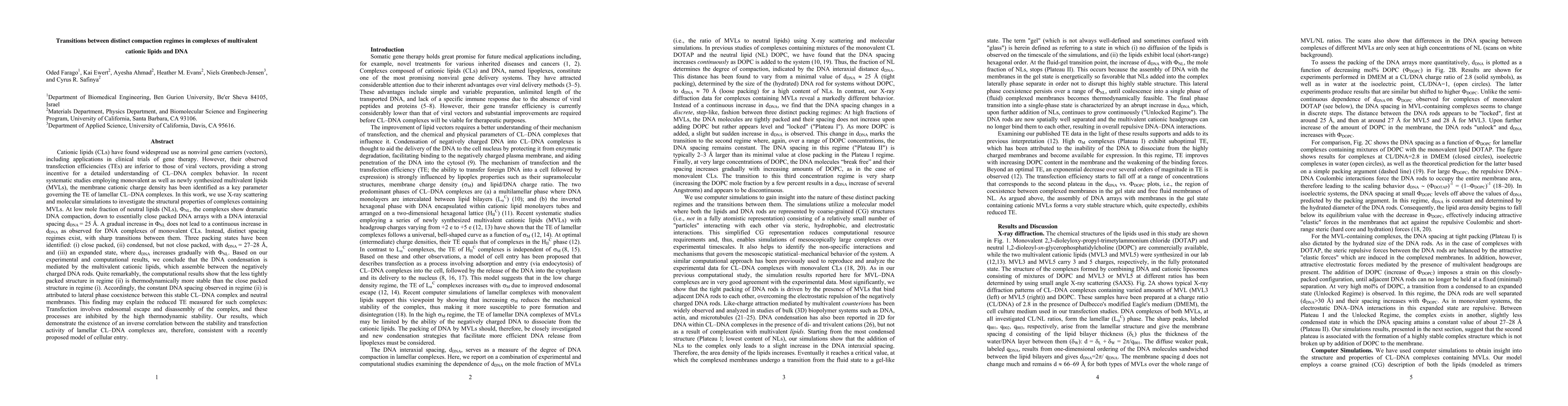 This paper investigates the structural properties of complexes formed by multivalent cationic lipids and DNA using X-ray scattering and molecular simulations. It reveals distinct compaction regimes and sharp transitions between them, identifying three packing states, with the less tightly packed state being thermodynamically more stable. This stability correlates with reduced transfection efficiency due to inhibited endosomal escape and disassembly.