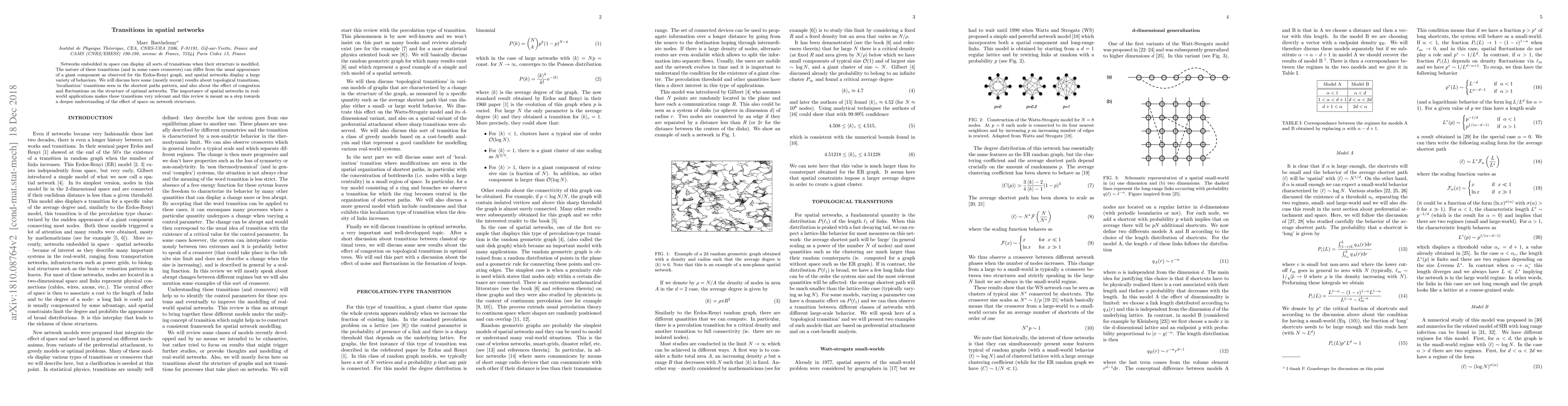 This paper reviews recent findings on topological transitions, localization in shortest paths, and the impact of congestion and fluctuations in spatial networks, emphasizing their relevance for real-world applications and the effect of spatial embedding on network structures.