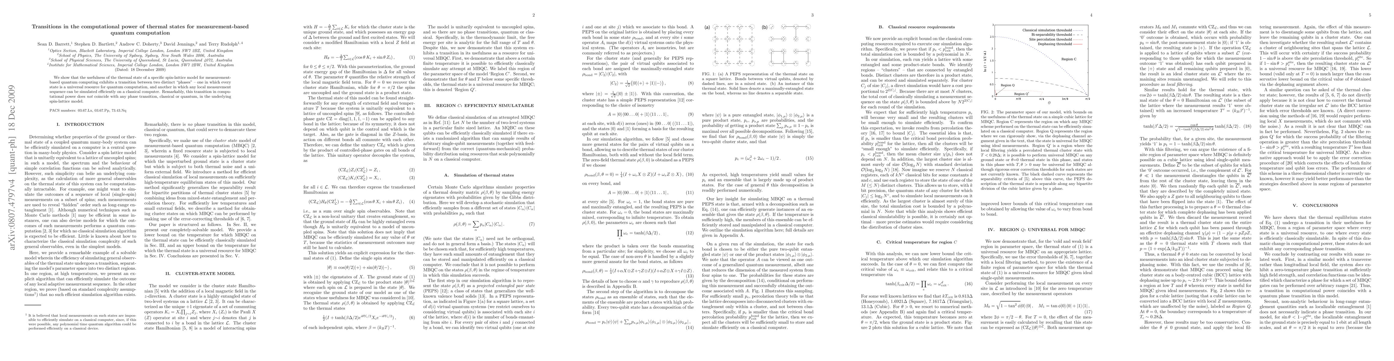 Researchers discovered two distinct phases of computational power in a thermal state used for measurement-based quantum computing. One phase renders the state useful for universal computation, while the other makes it efficiently simulable on a classical computer.