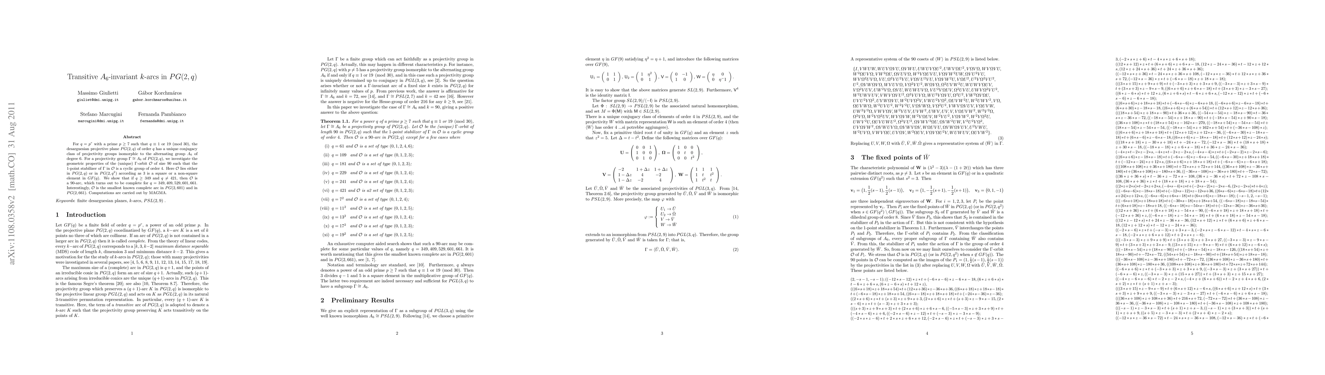 For $q=p^r$ with a prime $p\ge 7$ such that $q \equiv 1$ or $19\pmod {30},$ the desarguesian projective plane $PG(2,q)$ of order $q$ has a unique conjugacy class of projectivity groups isomorphic to the alternating group $A_6$ of degree 6. For a projectivity group $\Gamma\cong A_6$ of $PG(2,q)$, we investigate the geometric properties of the (unique) $\Gamma$-orbit $\mathcal{O}$ of size 90 such that the 1-point stabilizer of $\Gamma$ in $\mathcal O$ is a cyclic group of order 4. Here $\mathcal O$ lies either in $PG(2,q)$ or in $PG(2,q^2)$ according as 3 is a square or a non-square element in $GF(q)$. We show that if $q\geq 349$ and $q\neq 421$, then $\mathcal O$ is a 90-arc, which turns out to be complete for $q=349, 409, 529, 601,661.$ Interestingly, $\mathcal O$ is the smallest known complete arc in $PG(2,601)$ and in $PG(2,661).$ Computations are carried out by MAGMA.