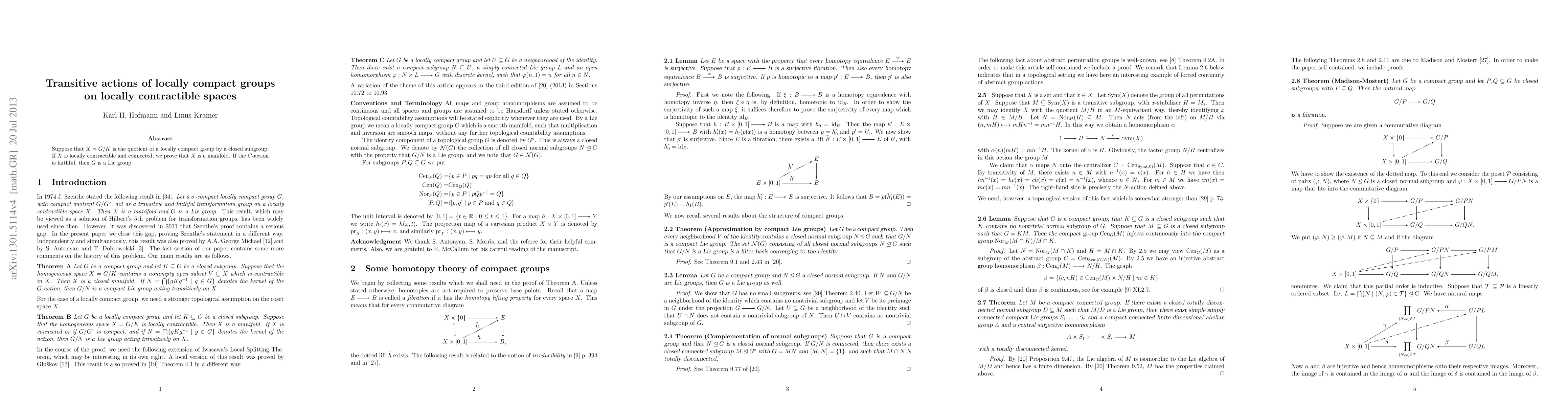 Suppose that $X=G/K$ is the quotient of a locally compact group by a closed subgroup. If $X$ is locally contractible and connected, we prove that $X$ is a manifold. If the $G$-action is faithful, then $G$ is a Lie group.