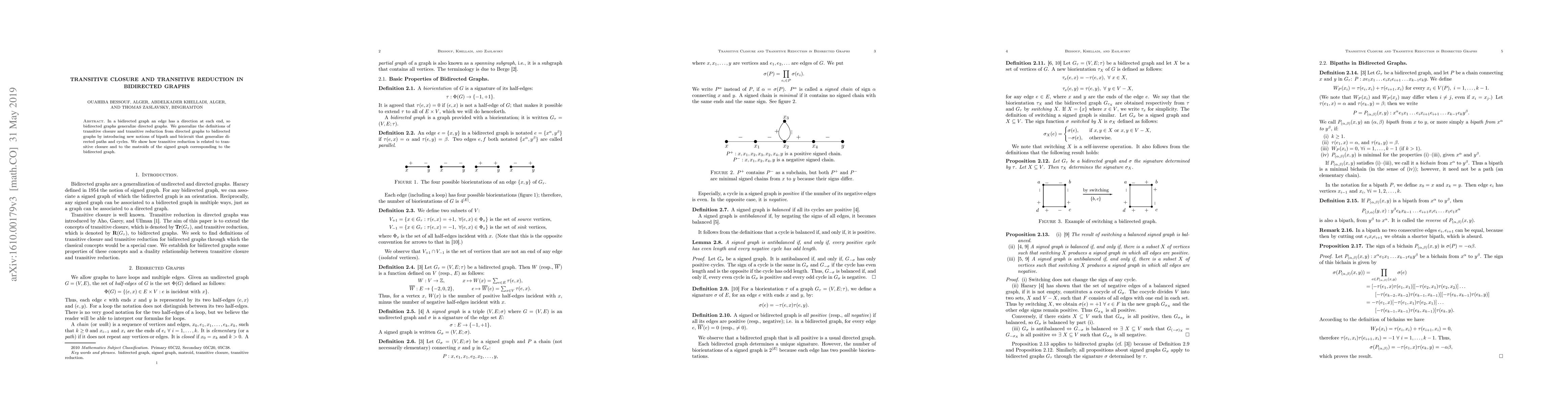 This paper generalizes transitive closure and transitive reduction from directed graphs to bidirected graphs, introducing new concepts of bipath and bicircuit. It explores the relationship between transitive reduction, transitive closure, and the matroids of the signed graph derived from the bidirected graph.