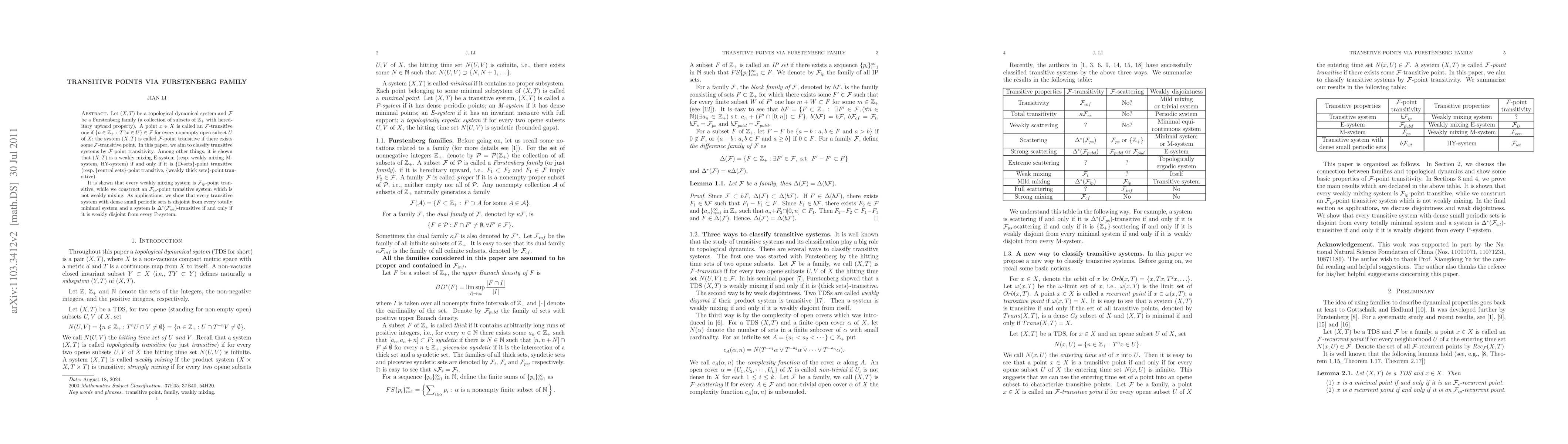 Let $(X,T)$ be a topological dynamical system and $\mathcal{F}$ be a Furstenberg family (a collection of subsets of $\mathbb{Z}_+$ with hereditary upward property). A point $x\in X$ is called an $\mathcal{F}$-transitive one if $\{n\in\mathbb{Z}_+:\, T^n x\in U\}\in\F$ for every nonempty open subset $U$ of $X$; the system $(X,T)$ is called $\F$-point transitive if there exists some $\mathcal{F}$-transitive point. In this paper, we aim to classify transitive systems by $\mathcal{F}$-point transitivity. Among other things, it is shown that $(X,T)$ is a weakly mixing E-system (resp.\@ weakly mixing M-system, HY-system) if and only if it is $\{\textrm{D-sets}\}$-point transitive (resp.\@ $\{\textrm{central sets}\}$-point transitive, $\{\textrm{weakly thick sets}\}$-point transitive). It is shown that every weakly mixing system is $\mathcal{F}_{ip}$-point transitive, while we construct an $\mathcal{F}_{ip}$-point transitive system which is not weakly mixing. As applications, we show that every transitive system with dense small periodic sets is disjoint from every totally minimal system and a system is $\Delta^*(\mathcal{F}_{wt})$-transitive if and only if it is weakly disjoint from every P-system.