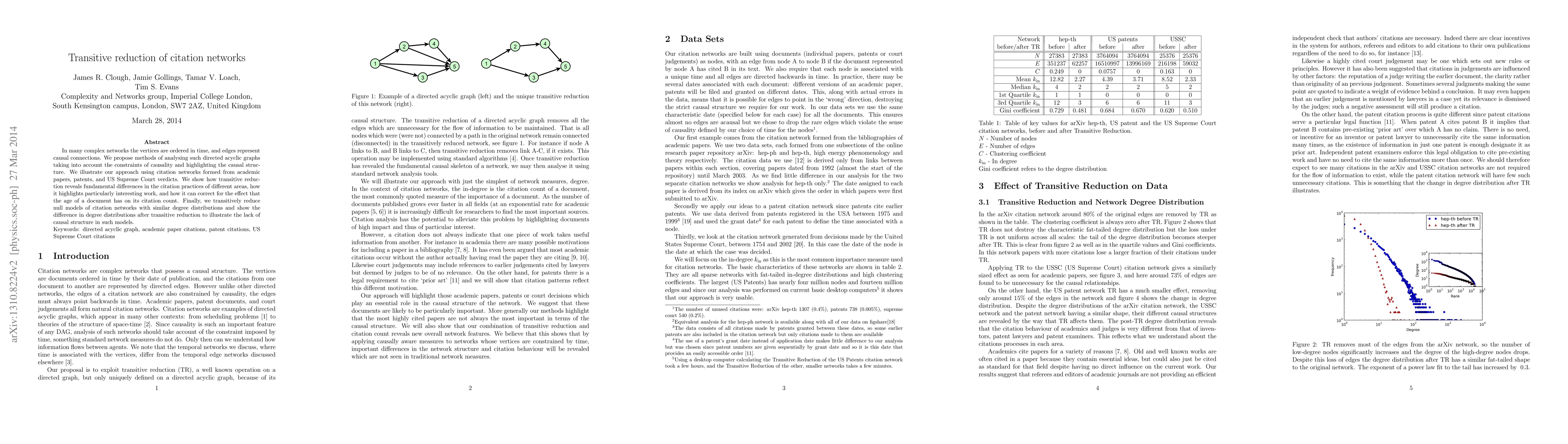 In many complex networks the vertices are ordered in time, and edges represent causal connections. We propose methods of analysing such directed acyclic graphs taking into account the constraints of causality and highlighting the causal structure. We illustrate our approach using citation networks formed from academic papers, patents, and US Supreme Court verdicts. We show how transitive reduction reveals fundamental differences in the citation practices of different areas, how it highlights particularly interesting work, and how it can correct for the effect that the age of a document has on its citation count. Finally, we transitively reduce null models of citation networks with similar degree distributions and show the difference in degree distributions after transitive reduction to illustrate the lack of causal structure in such models.