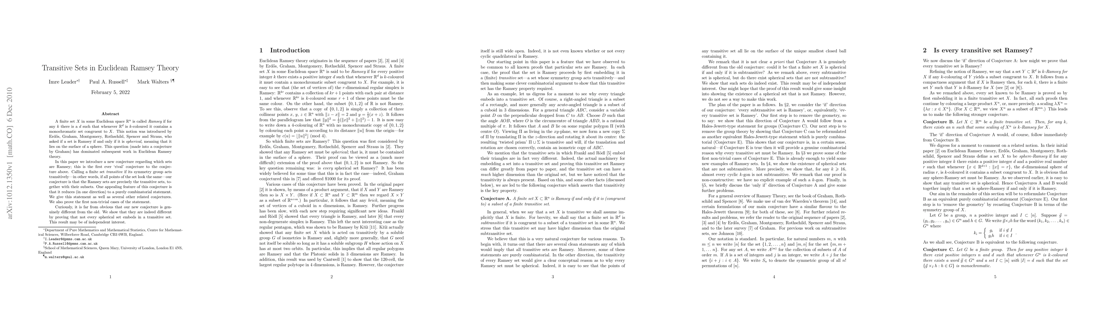 This paper introduces a new conjecture in Euclidean Ramsey theory suggesting that Ramsey sets are precisely the transitive sets and their subsets, contrasting with the long-standing conjecture that Ramsey sets are spherical. The authors prove initial non-trivial cases and show that their conjecture differs from the old by demonstrating that not every spherical set embeds in a transitive set.