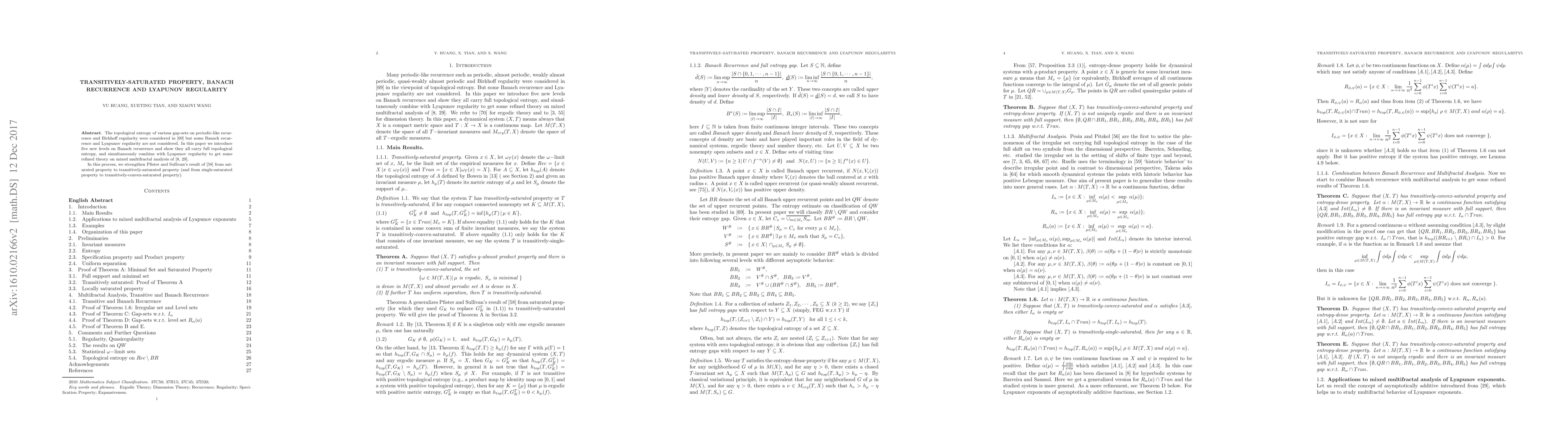 The research introduces a novel approach by combining transitively-saturated properties with Lyapunov regularity, offering a fresh perspective on entropy and recurrence in dynamical systems.