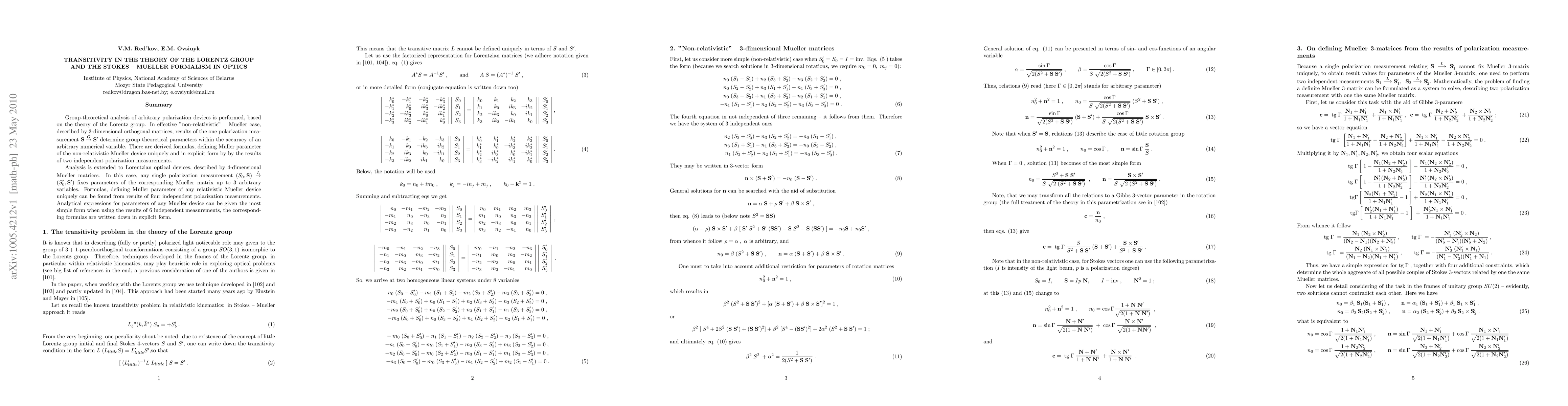 Researchers developed a group-theoretical analysis to determine the parameters of optical devices based on Mueller matrices, enabling unique identification with two polarization measurements. This work expands understanding of Lorentzian optical devices and their applications in optics.